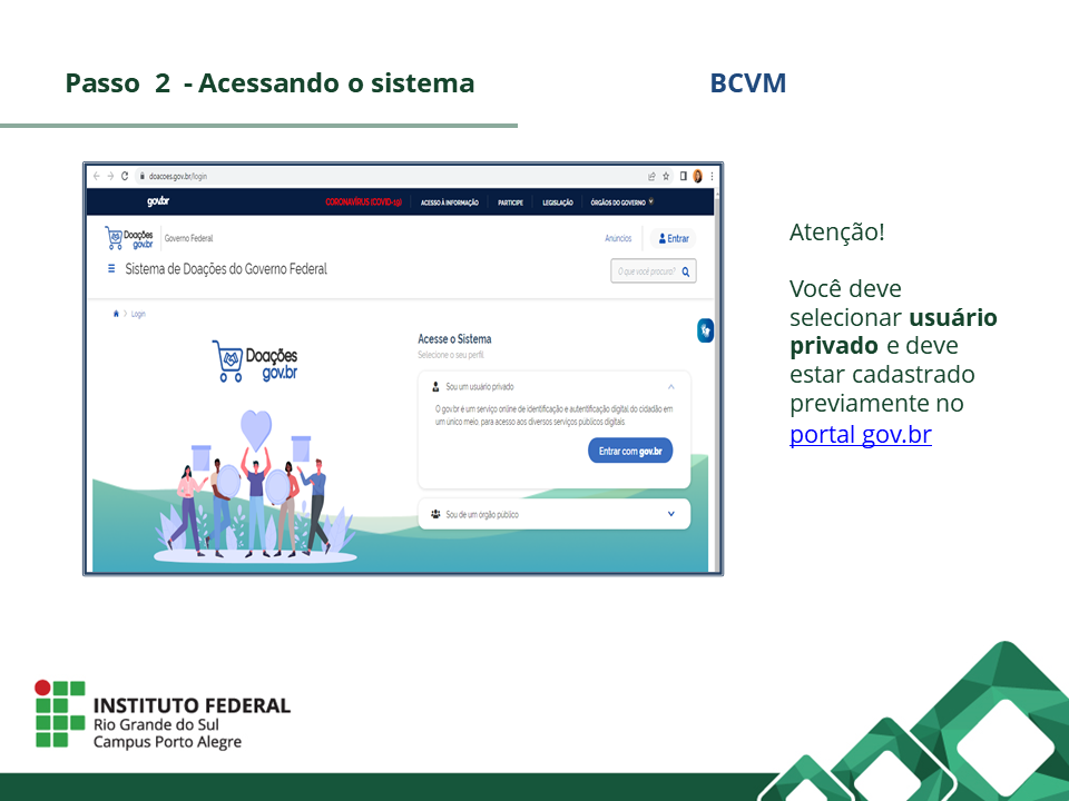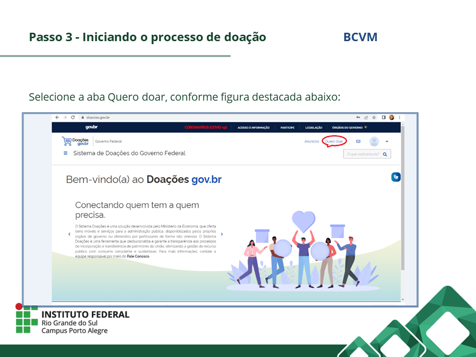 BRASIL. Sistema de Doações do Governo Federal. Doaçõe.gov. Disponível em: https://doacoes.gov.br/. Acesso em: 04 abr. 2022.