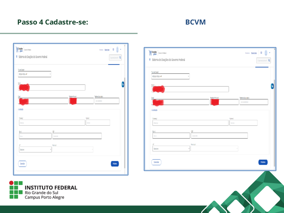 Nas imagens a seguir, a interface do sistema Doações GOV.BR passo a passo: