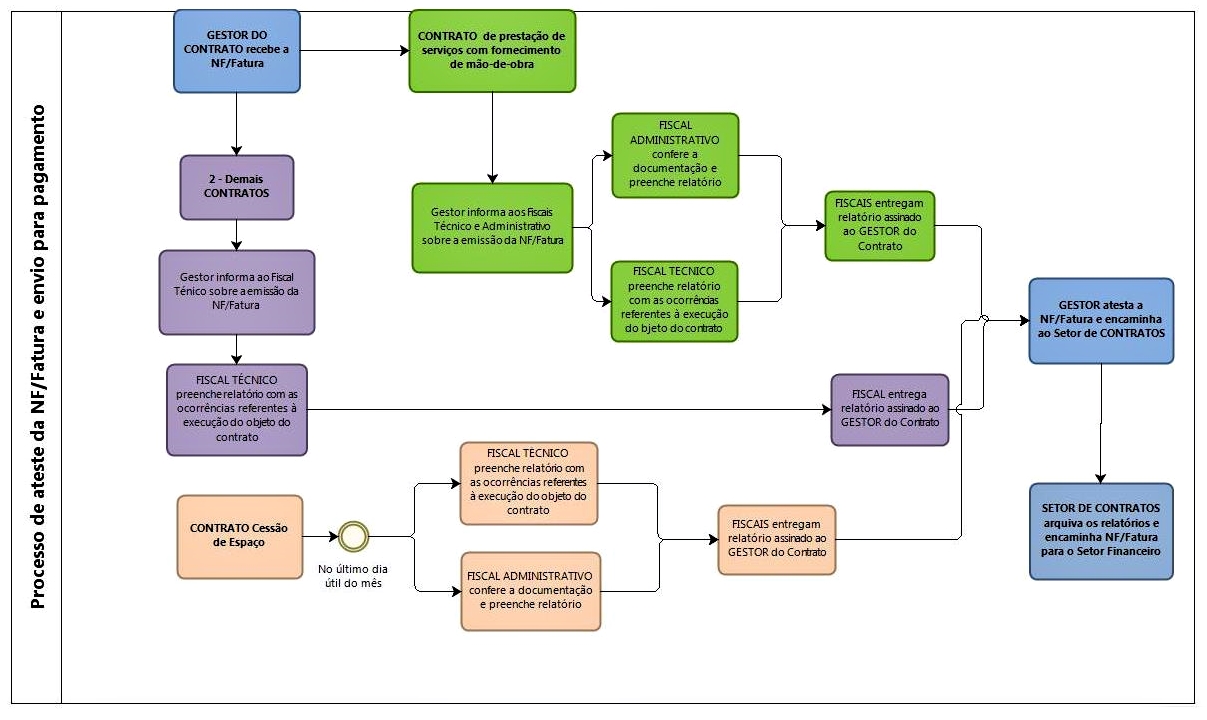 Fluxo para recebimento, ateste e envio da Nota Fiscal/Fatura para pagamento