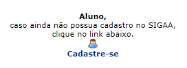 O aluno deve se cadastrar no SIGAA o usuário que deve ser utilizado como padrão o número do seu CPF.