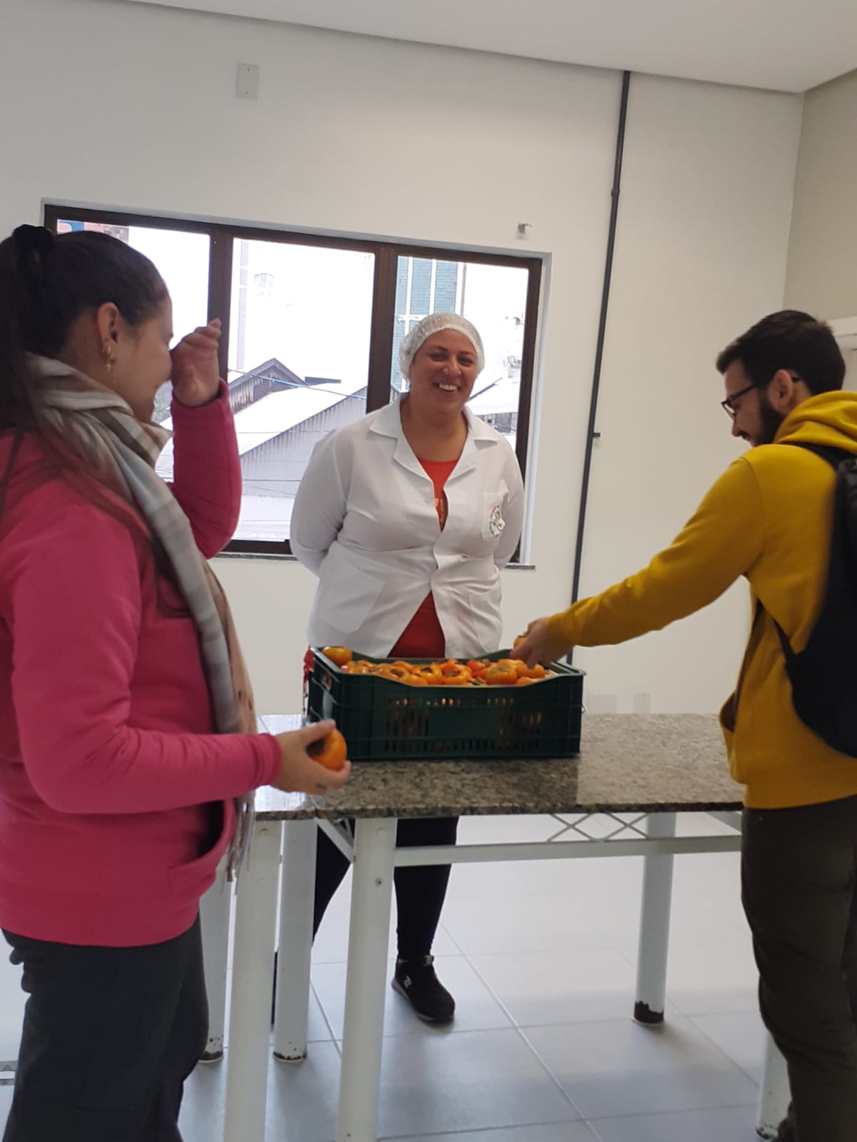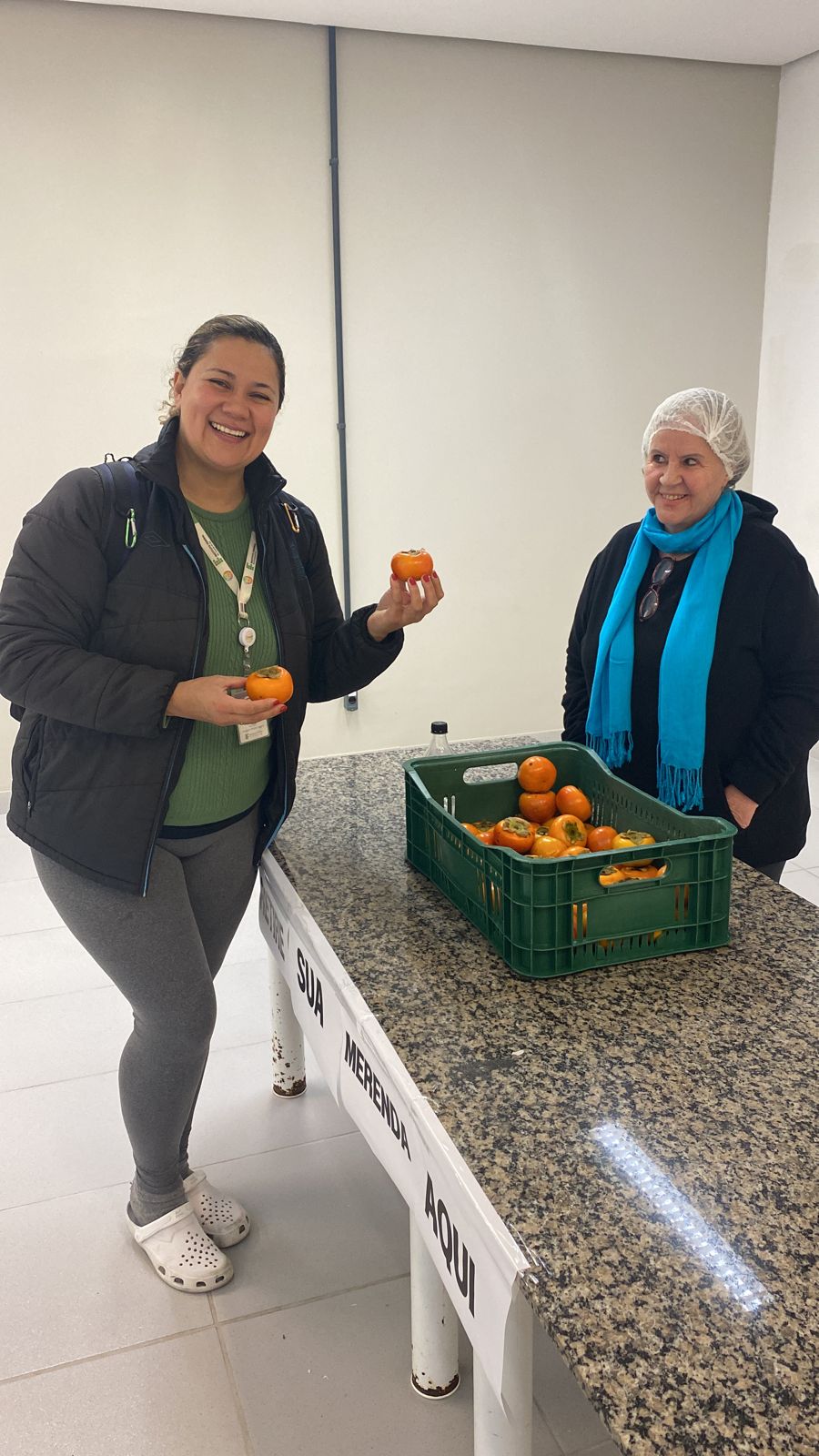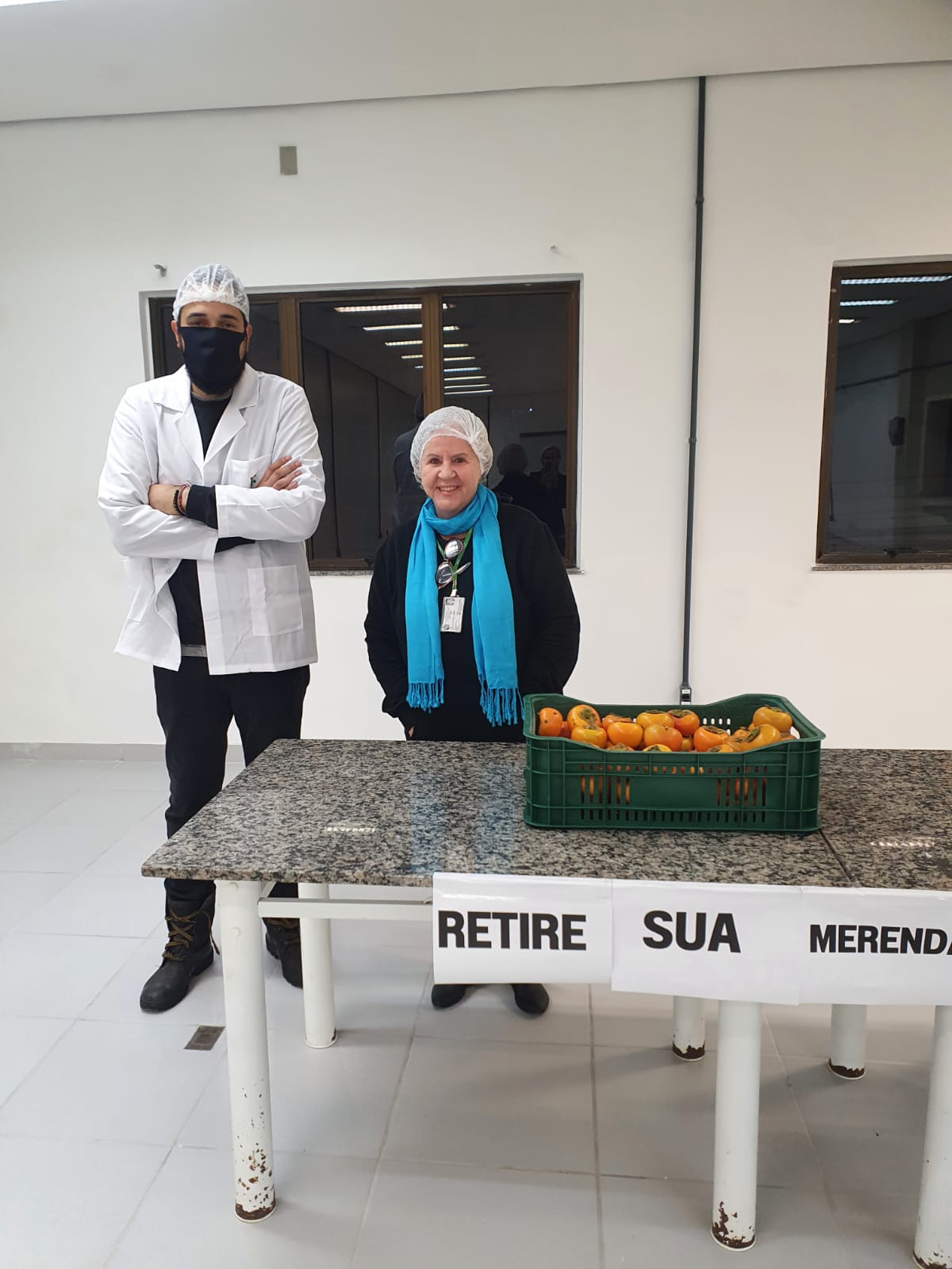 Na sexta-feira, as(os) estudantes receberam caqui, e nesta a segunda-feira, maçã.