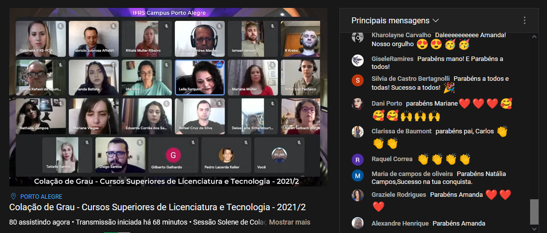 Solenidade foi transmitida via YouTube, onde familiares, amigos e colegas puderam acompanhar e enviar mensagens pelo chat