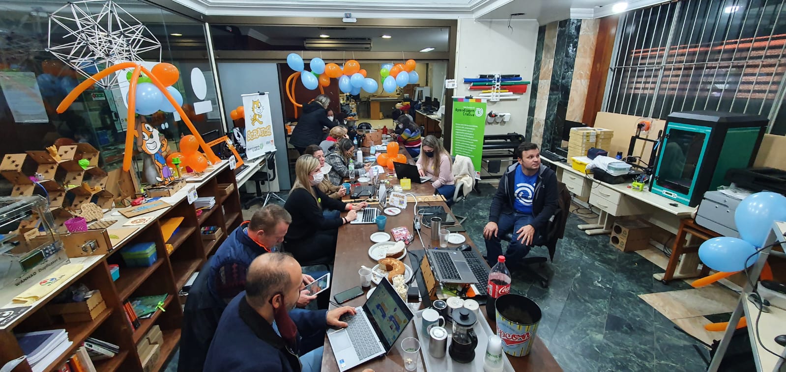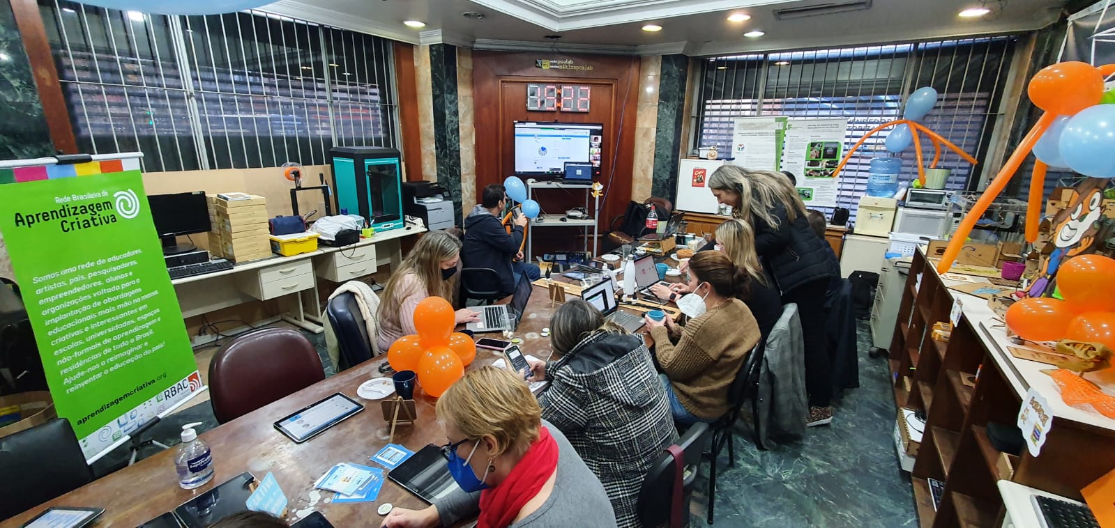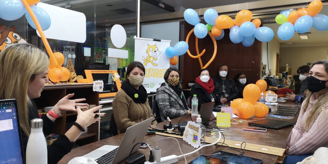 Na tarde de quarta-feira, 18 de maio, os professores André Peres, Silvia de Castro Bertagnolli, Marcia Hafele Islabão Franco, Marcelo Augusto Rauh Schmitt, Evandro Manara Miletto e Fabio Yoshimitsu Okuyama, do curso de Mestrado Profissional em Informática na Educação (MPIE) do IFRS - Campus Porto Alegre, juntamente com alunos e ex-alunos do MPIE, da pesquisadora Carolina Rodeghiero, coordenadora pedagógica da Rede Brasileira de Aprendizagem Criativa e professora visitante do Campus Porto Alegre pelo POALAB durante os anos de 2020 e 2021, e de Fabiana Lorenzi, articuladora nacional da Rede Brasileira de Aprendizagem Criativa, celebraram o Scratch Day, em comemoração aos 15 anos do ambiente de programação Scratch. A atividade foi realizada no espaço do POALAB. Na ocasião, o grupo também celebrou a escolha do Campus Porto Alegre como uma das instituições participantes do programa Scratch Educação Colaborativa (SEC) da Fundação Scracth para os anos de 2022 a 2024.
