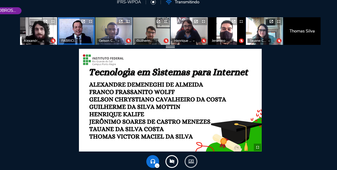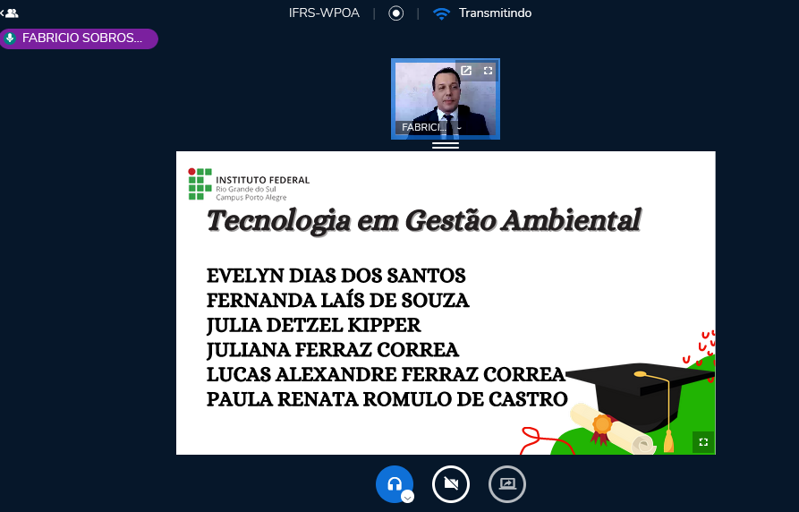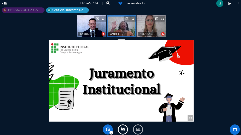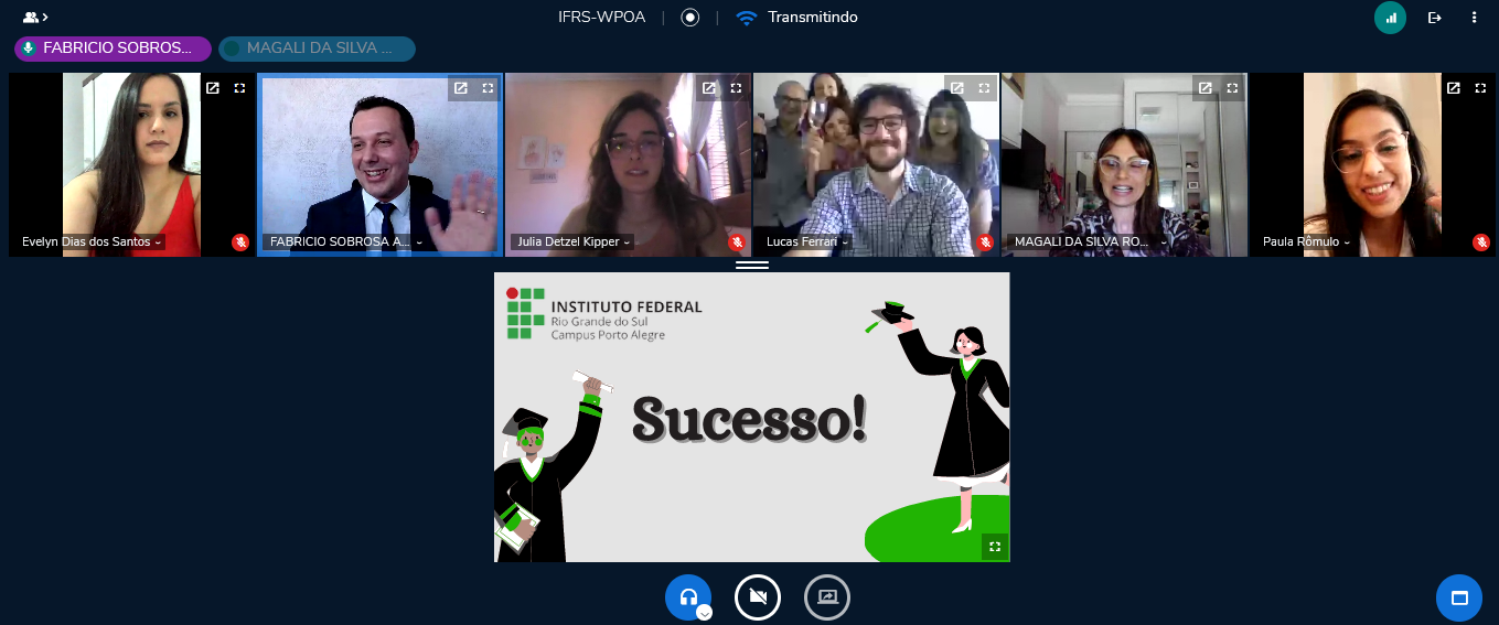 O IFRS - Campus Porto Alegre realizou na quinta-feira, 28 de outubro de 2021, mais uma Cerimônia de Colação de Grau totalmente virtual. Na ocasião colaram grau, de forma remota, 21 estudantes concluintes dos cursos superiores de Licenciatura em Ciências da Natureza, Tecnologia em Gestão Ambiental, Tecnologia em Processos Gerenciais e Tecnologia em Sistemas para Internet.