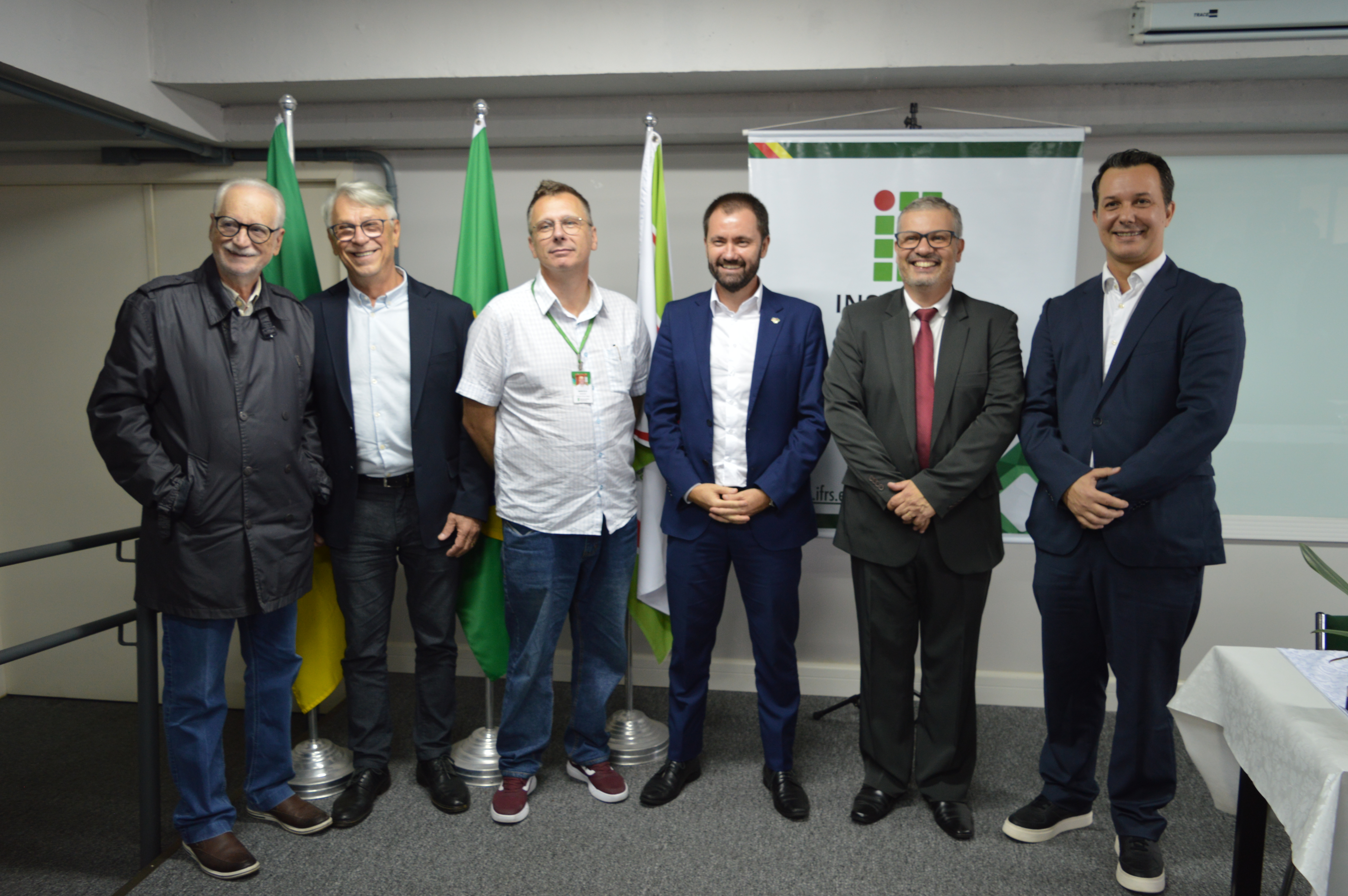 O professor Fabrício Sobrosa Affeldt (Diretor Geral, Gestão 2020-2024), o Reitor e Pró-Reitores do IFRS, servidores e estudantes do campus, autoridades e entidades sindicais estiveram presentes.