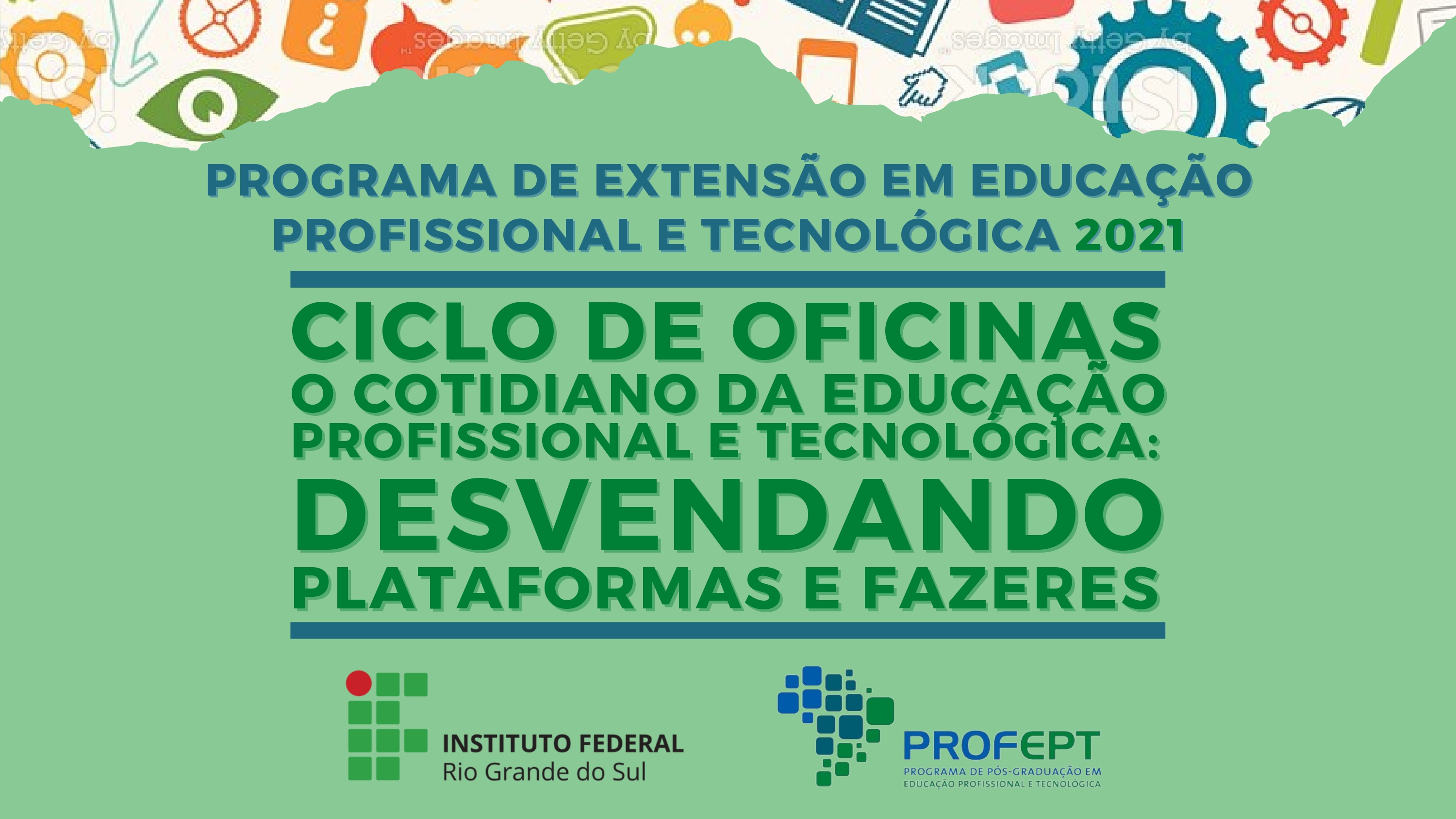 O Ciclo de Oficinas “O cotidiano da Educação Profissional e Tecnológica: desvendando plataformas e fazeres” é uma ação de extensão promovida pelo Programa de Extensão em Educação Profissional e Tecnológica, vinculado ao Mestrado ProfEPT - IFRS, que tem por objetivo abordar aspectos práticos dos fazeres envolvidos nas dinâmicas de implantação e desenvolvimento dos projetos na Educação Profissional e Tecnológica (EPT).