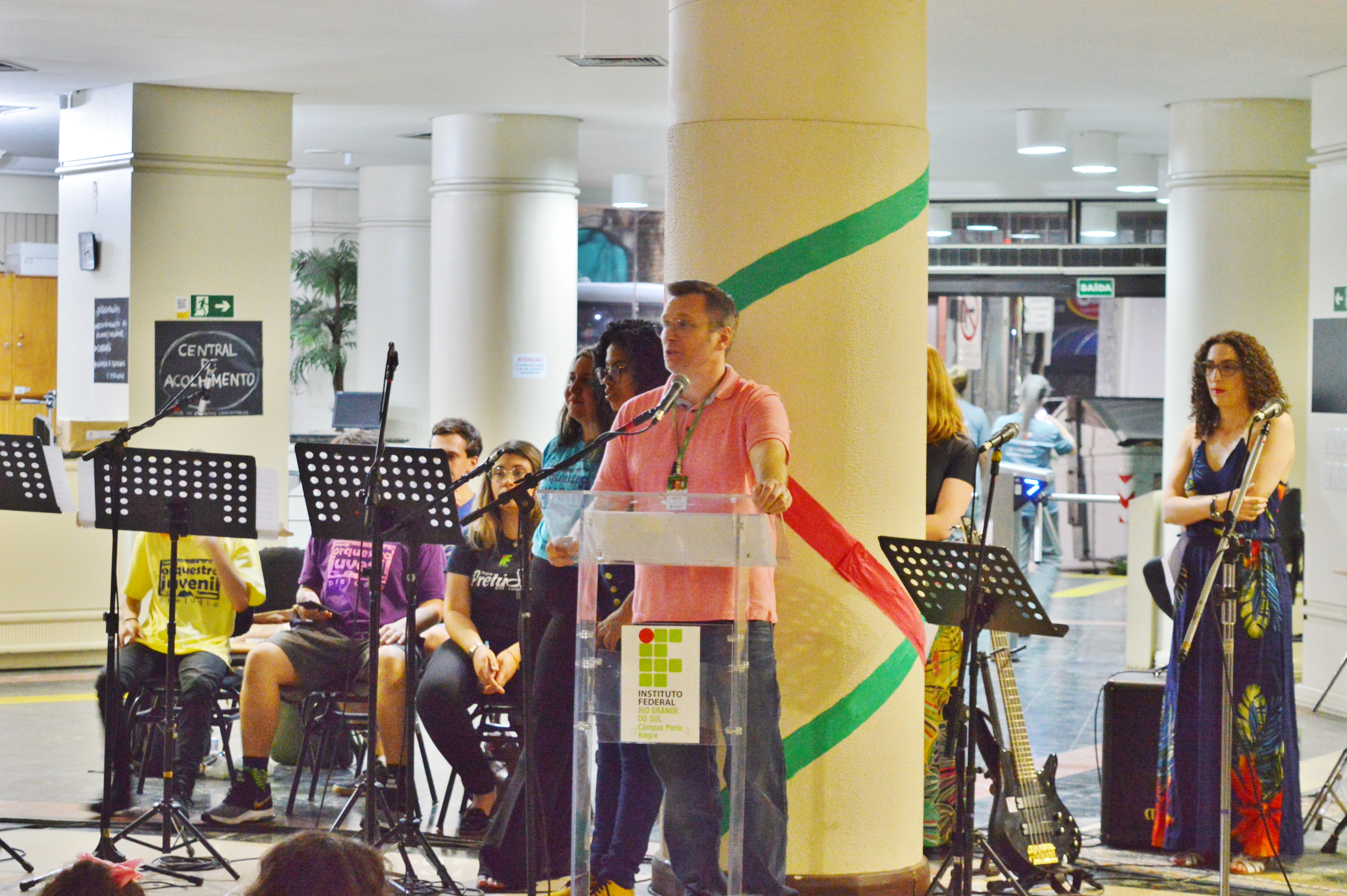 O diretor-geral do Campus, professor Marcelo Schmitt, deu as boas-vindas ao público e destacou que as ações do Prelúdio trazem vida e alegria à instituição, e parabenizou o trabalho realizado pelos professores envolvidos no programa.