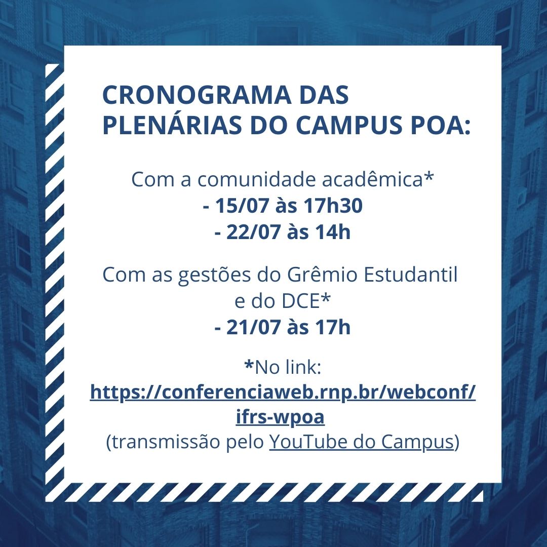 Convite à comunidade: plenárias sobre o Plano de Ação 2022 do Campus Porto Alegre nos dias 15, 21 e 22/07