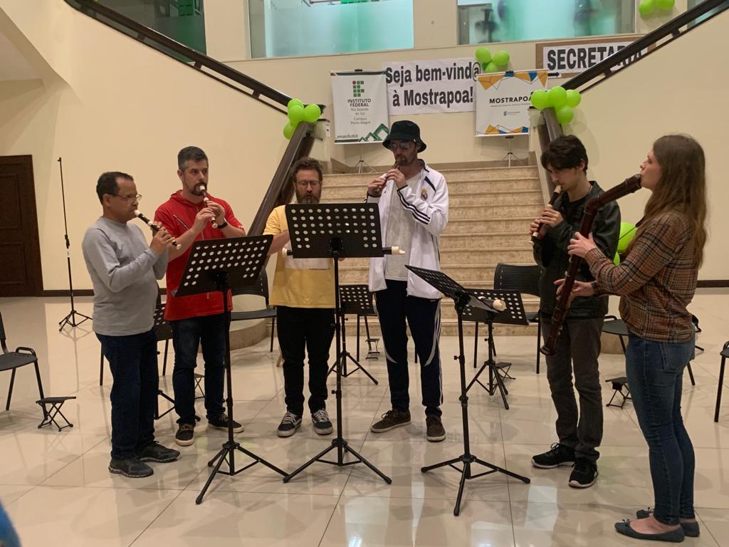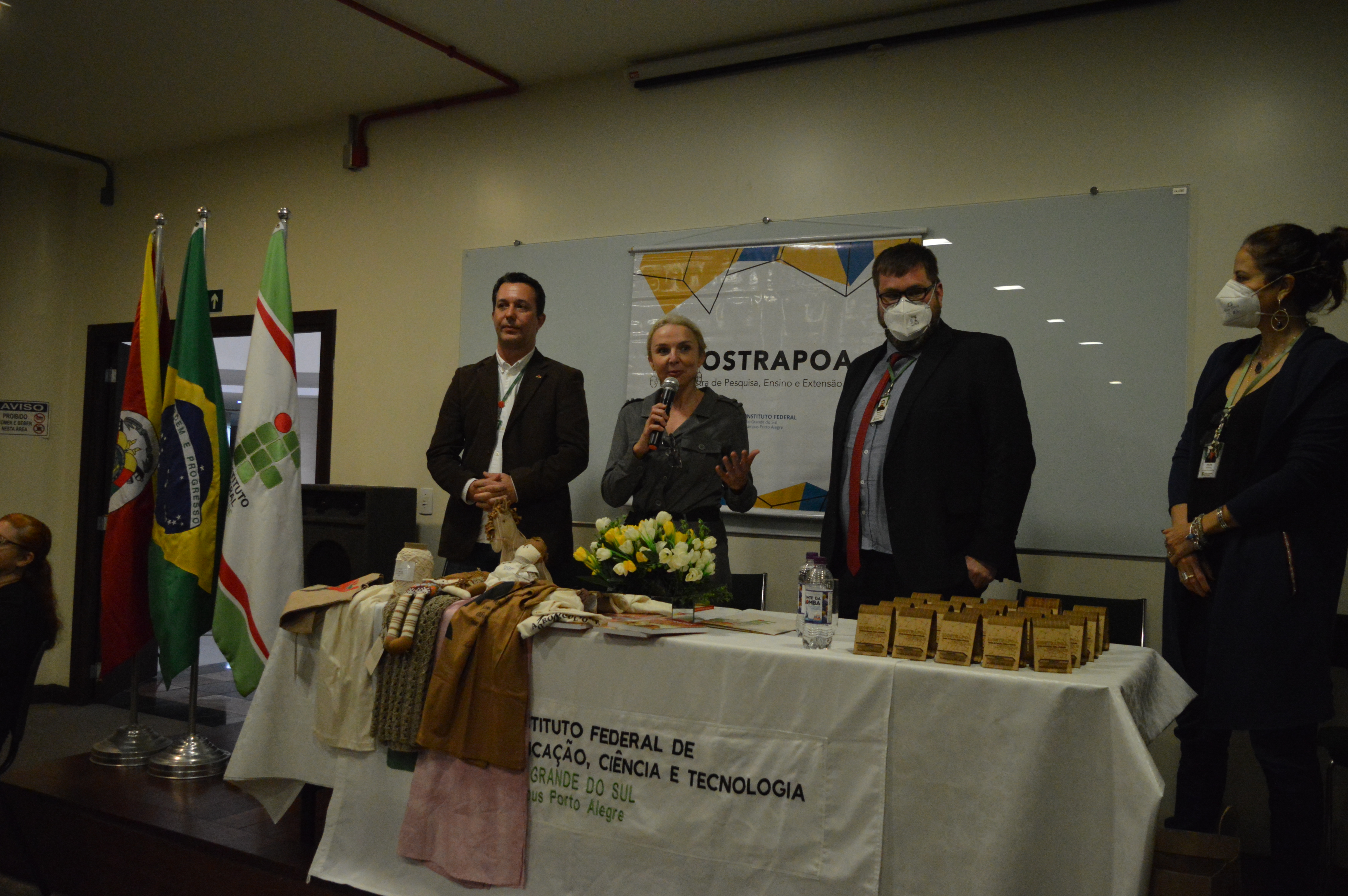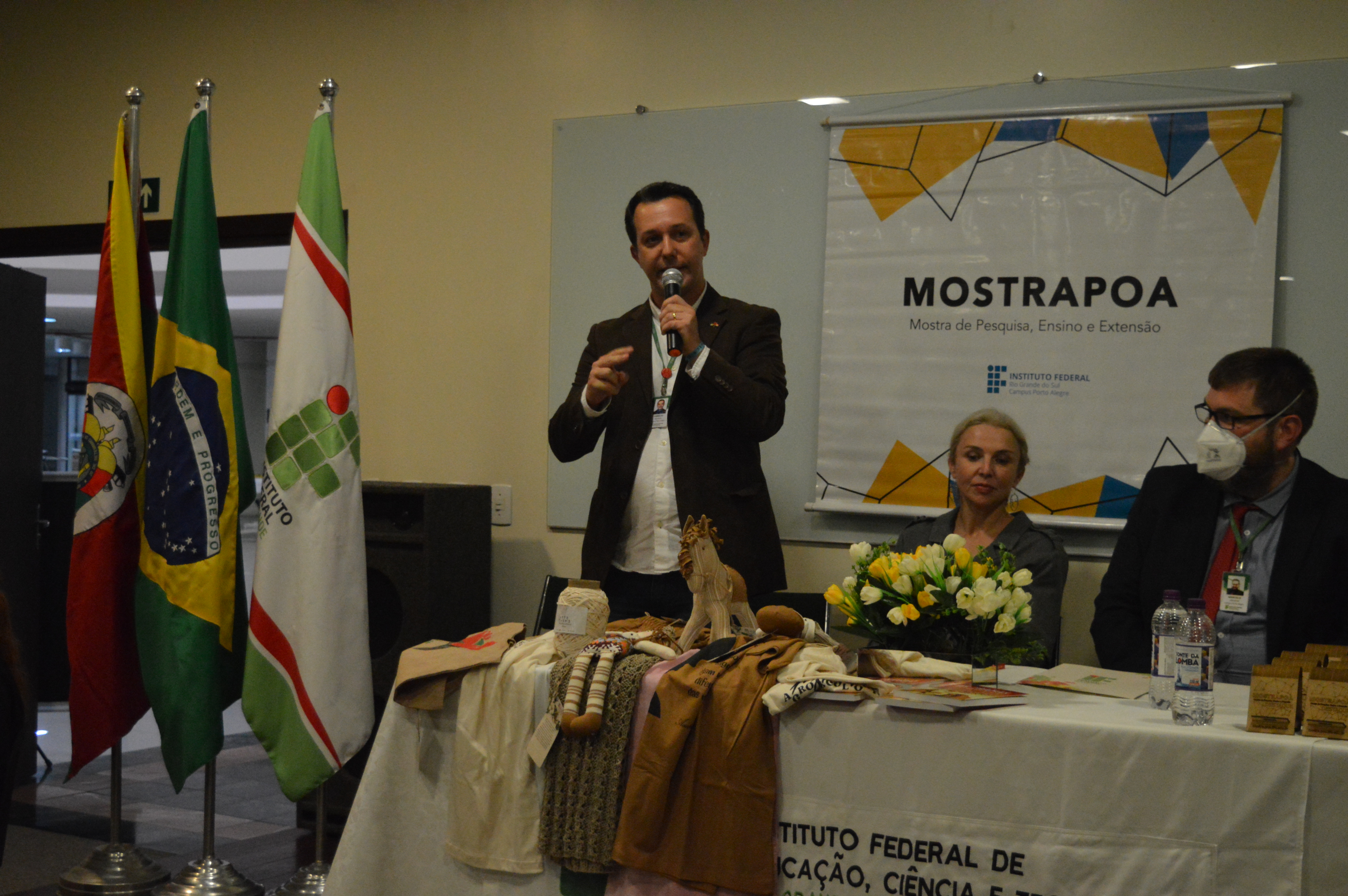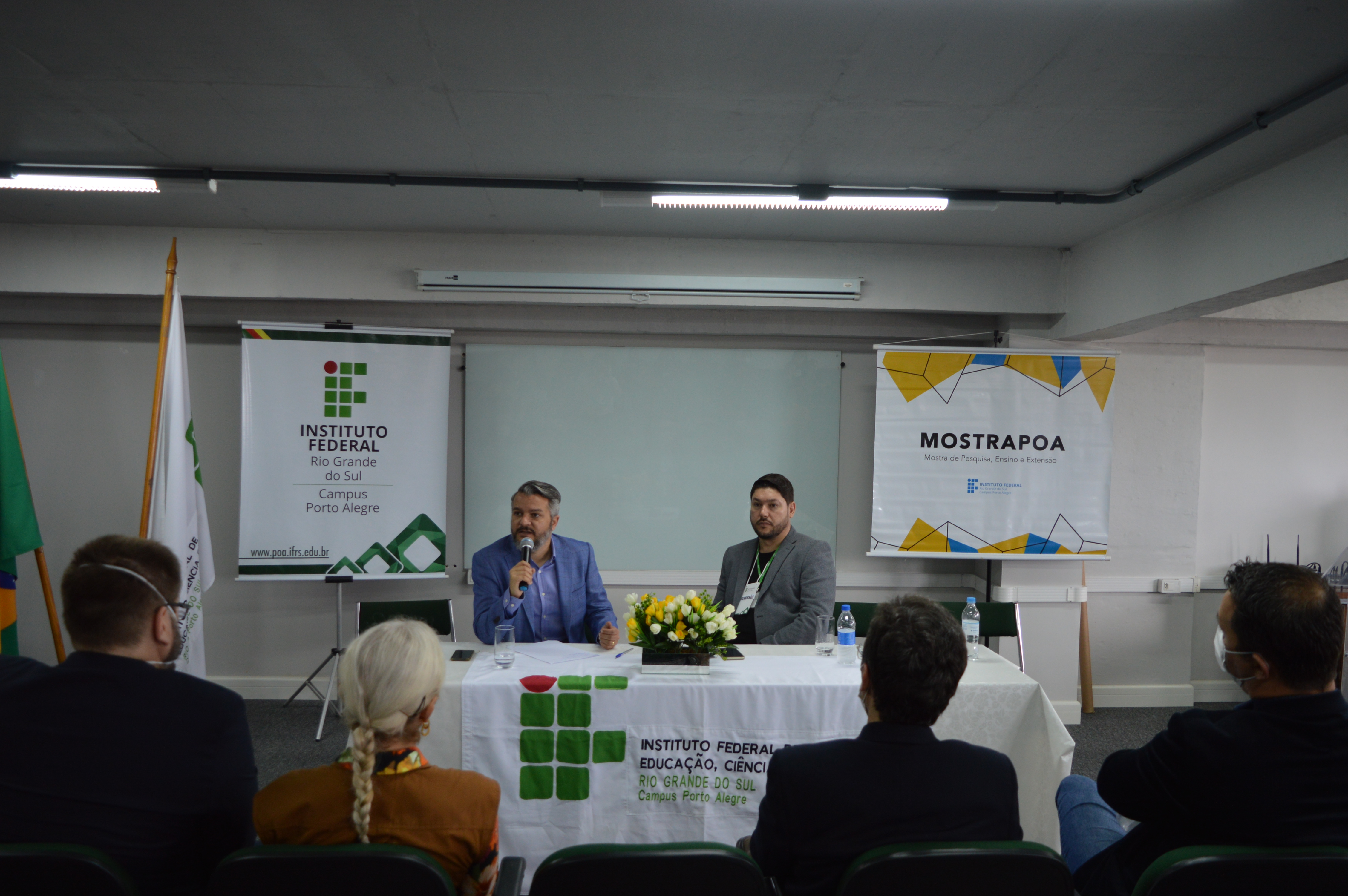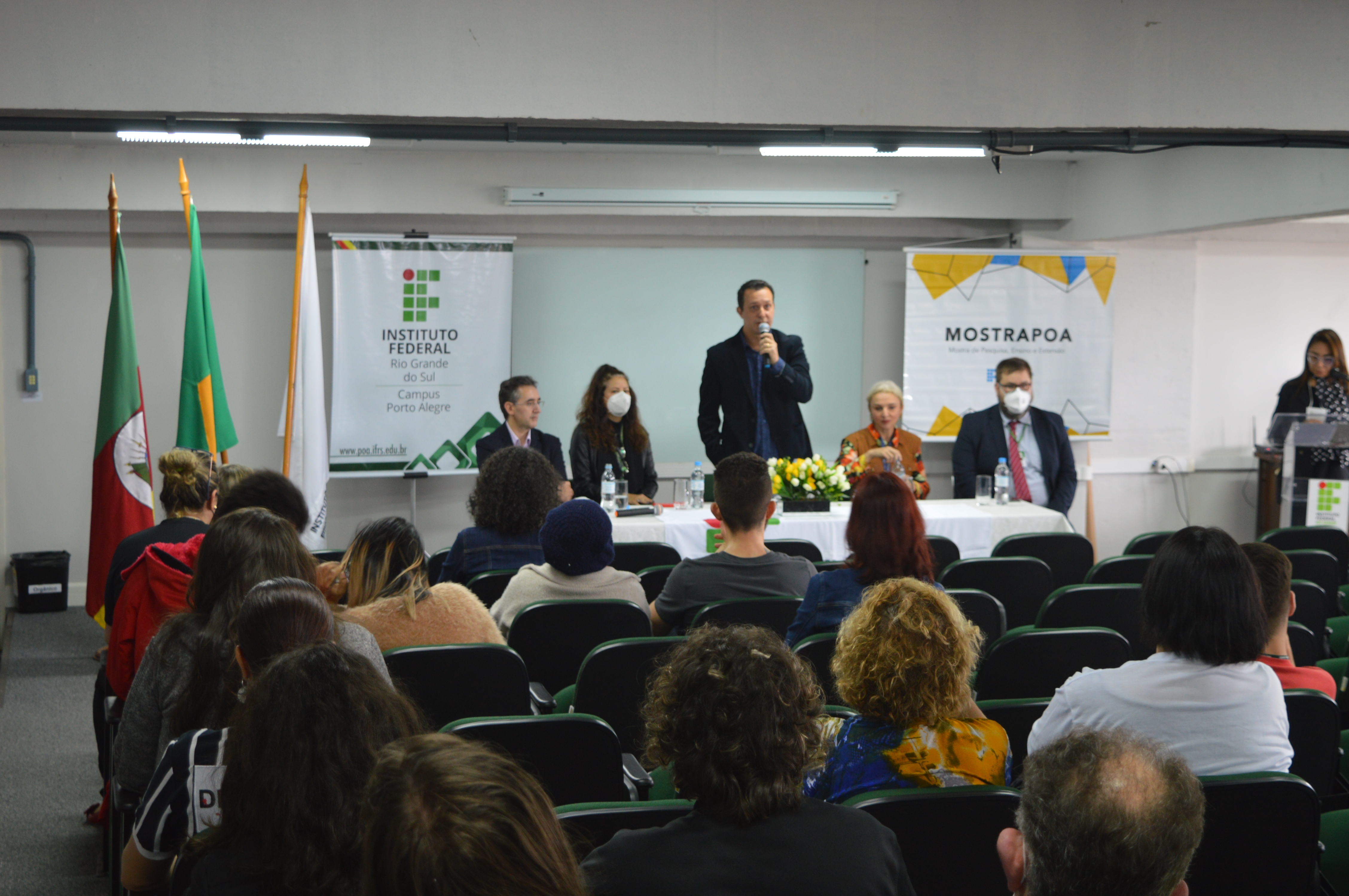 A cerimônia de abertura da Mostra foi realizada no dia 19, às 9h, no auditório 923 da Torre Sul, com a presença do chefe do Departamento de Pesquisa e Inovação e do Escritório de Projetos do IFRS, Anderson Yanzer, representando a pró-reitoria de Pesquisa, Pós-graduação e Inovação (Proppi) e a reitoria do IFRS; do diretor-geral do Campus Porto Alegre, Fabrício Sobrosa Affeldt; do diretor de Pesquisa, Pós-graduação e Inovação do Campus e presidente da Comissão Organizadora da 22ª MostraPoA, Marcelo Mallet Siqueira Campos; e das diretoras de Extensão, Helen Scorsatto Ortiz, e de Ensino, Márcia Bündchen, do Campus Porto Alegre.
