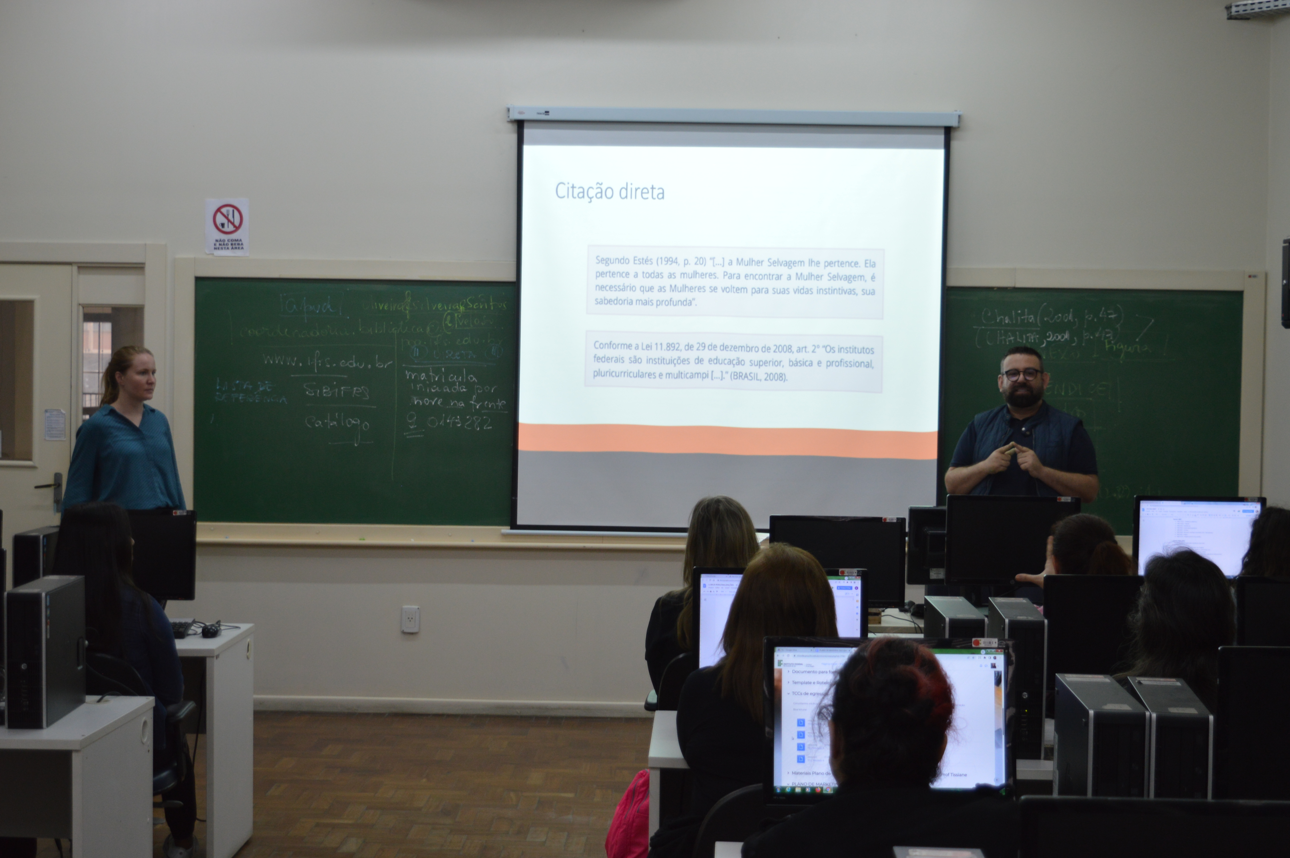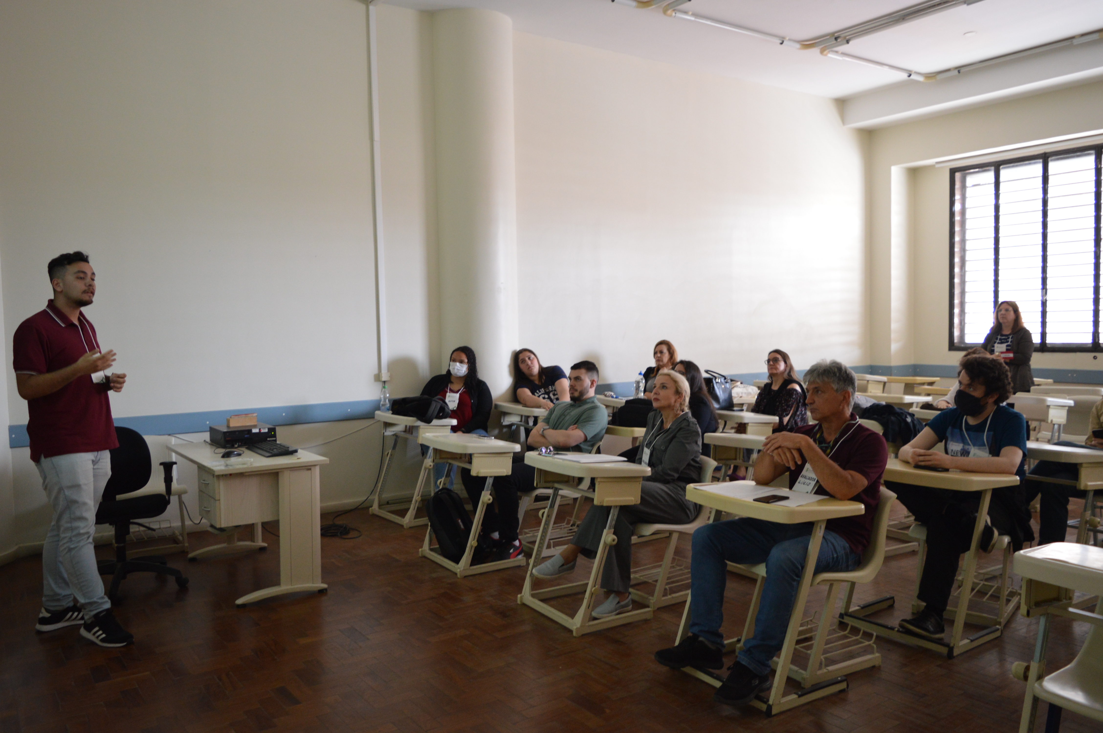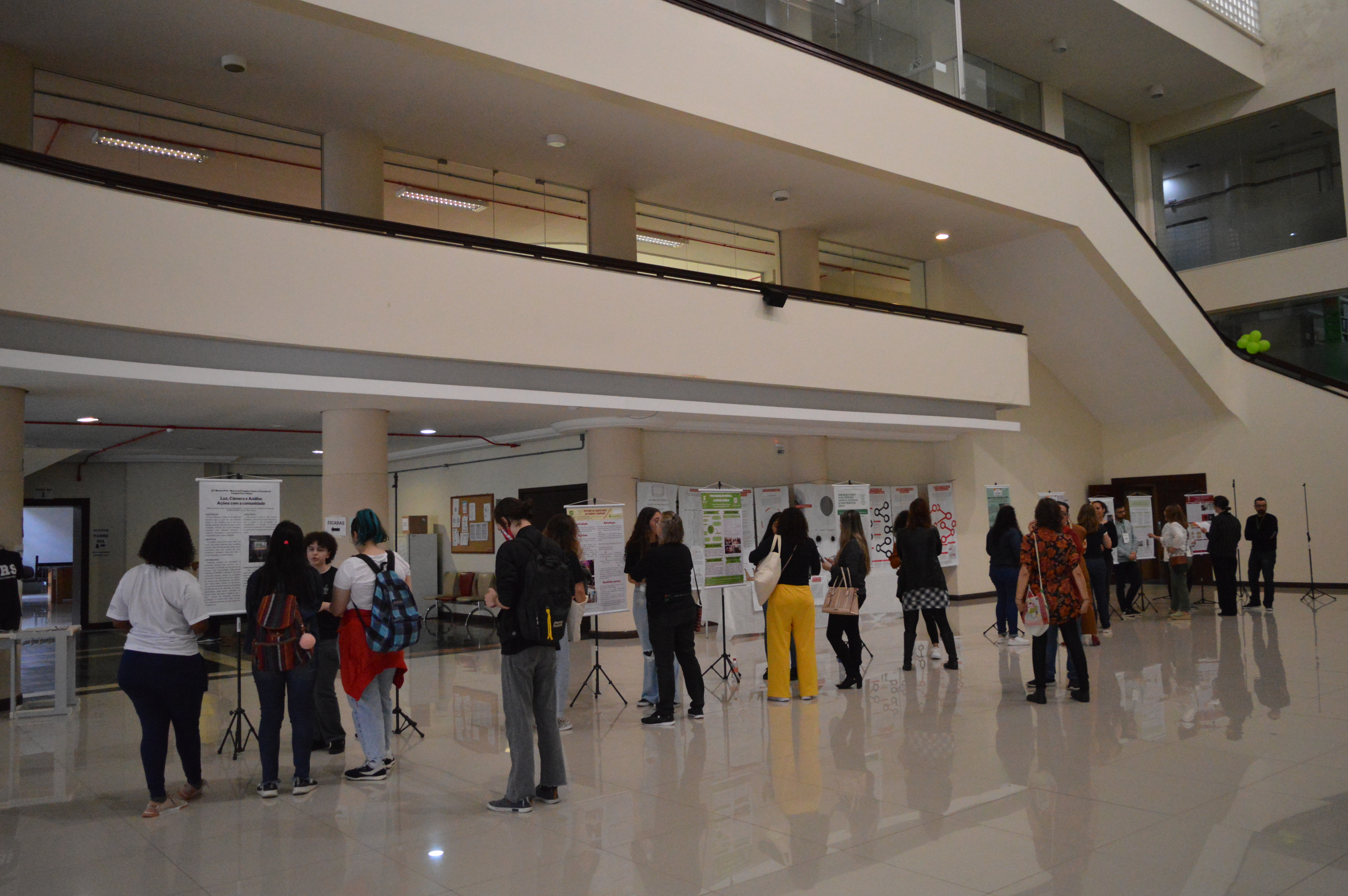 Na parte da tarde, às 13h30min, iniciaram-se as sessões de apresentação de trabalhos, que foram divididas durante os dois dias em diferentes horários e locais do Campus, estando as apresentações Orais nas salas de aula do 2º andar da Torre Norte, e as apresentações em pôster, no espaço do átrio, andar térreo.