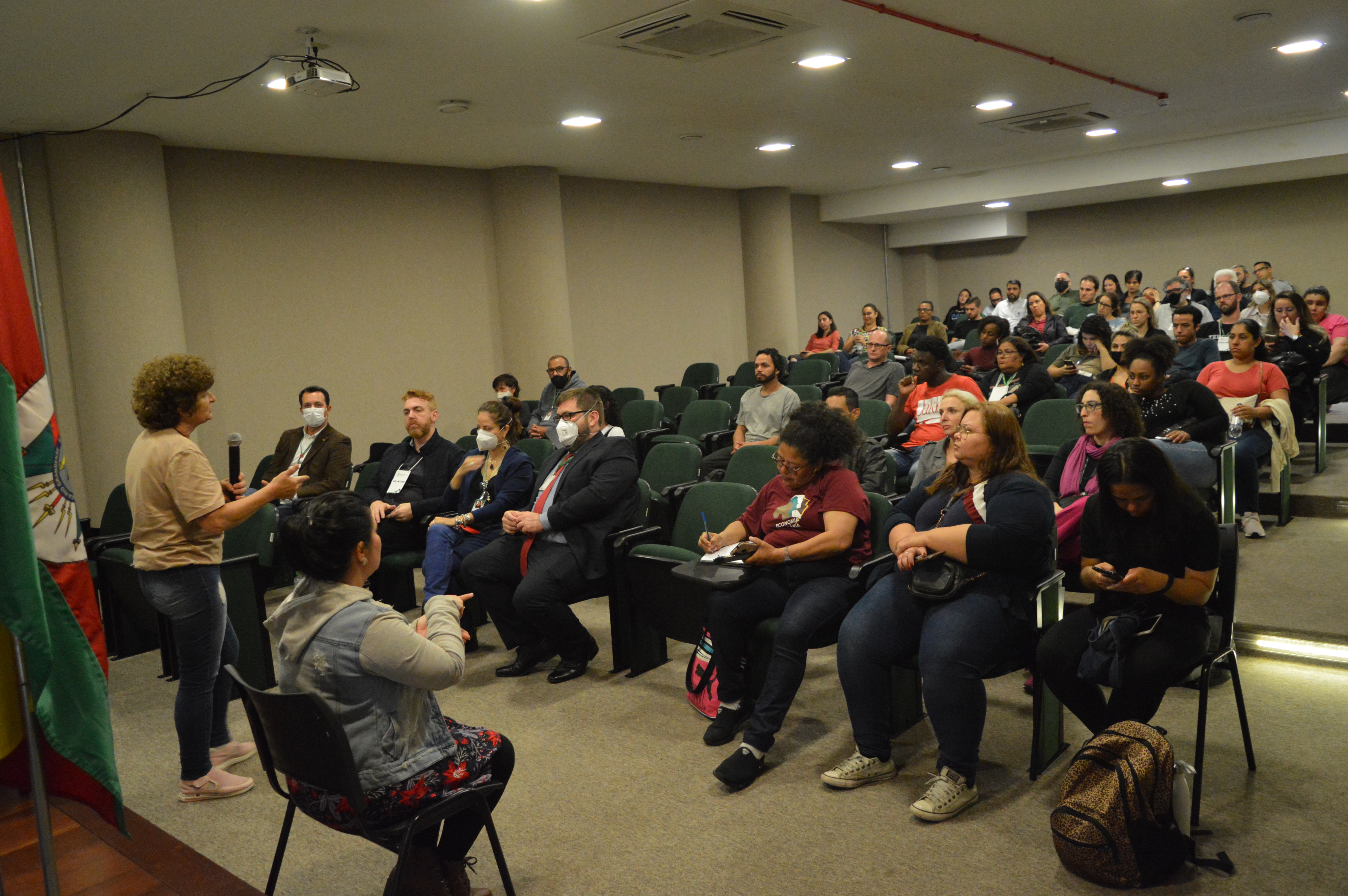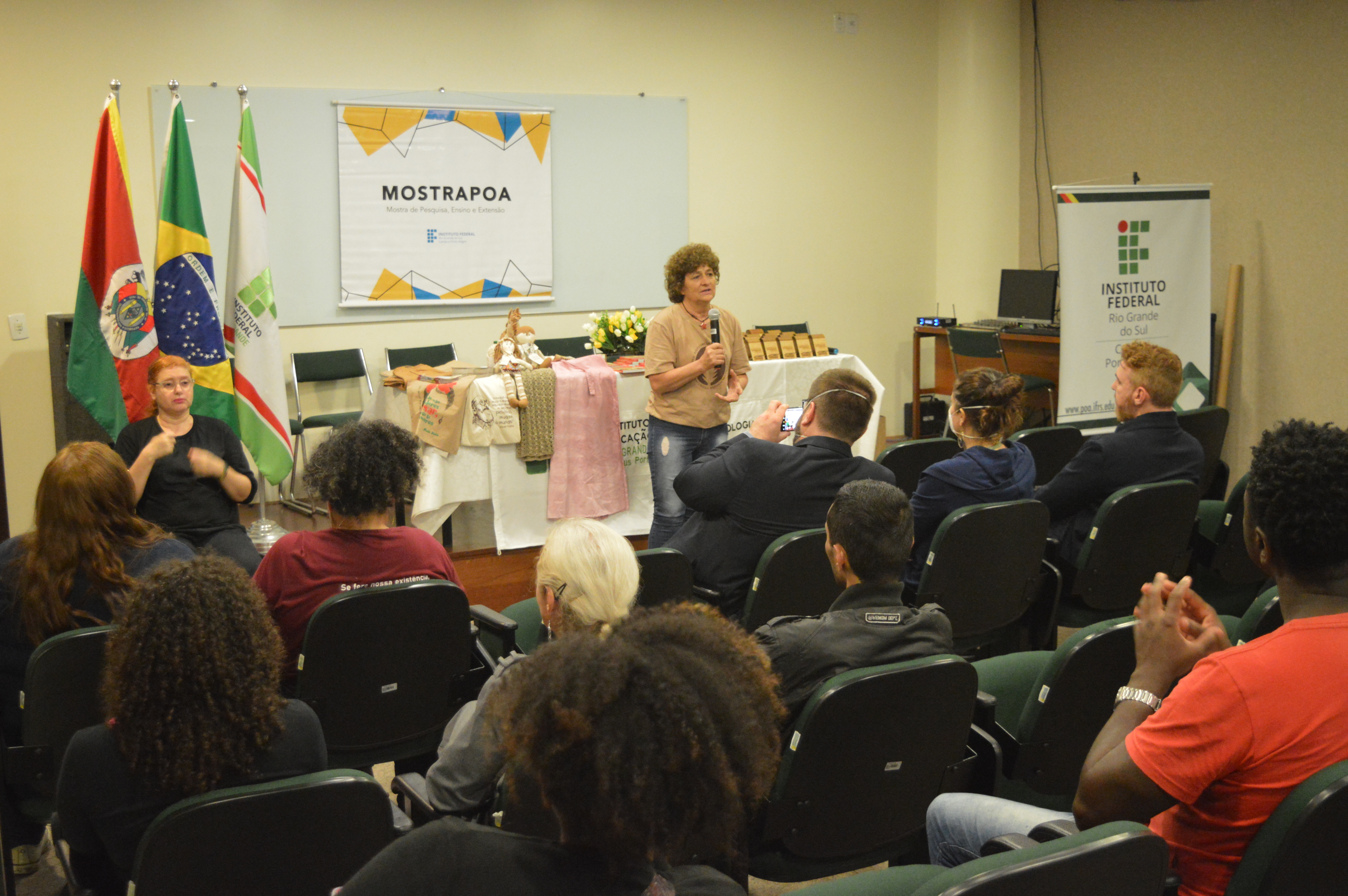 Em seguida, no auditório Rui Cruse, foi realizada a palestra de encerramento do evento, intitulada "Cooperativismo e economia solidária", com Nelsa Nespolo apresentando o caso de sucesso da Cooperativa Central Justa Trama, a maior cadeia produtiva no segmento de confecção da economia solidária (conheça mais no site justatrama.com.br). Na sequência, as falas de agradecimento dos integrantes da equipe diretiva do campus e o anúncio dos trabalhos premiados com Destaque na 22ª MostraPoA, fecharam o evento.