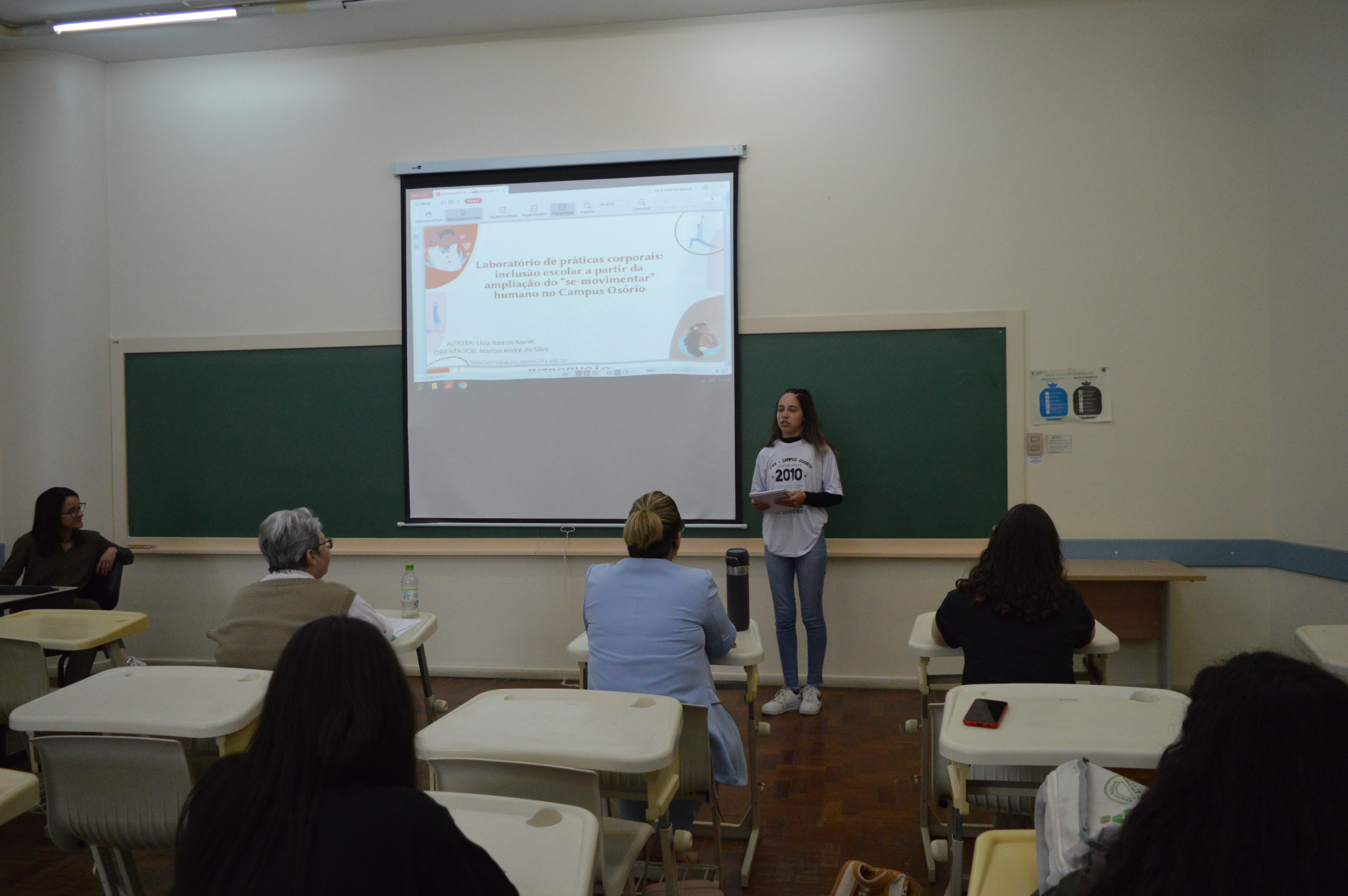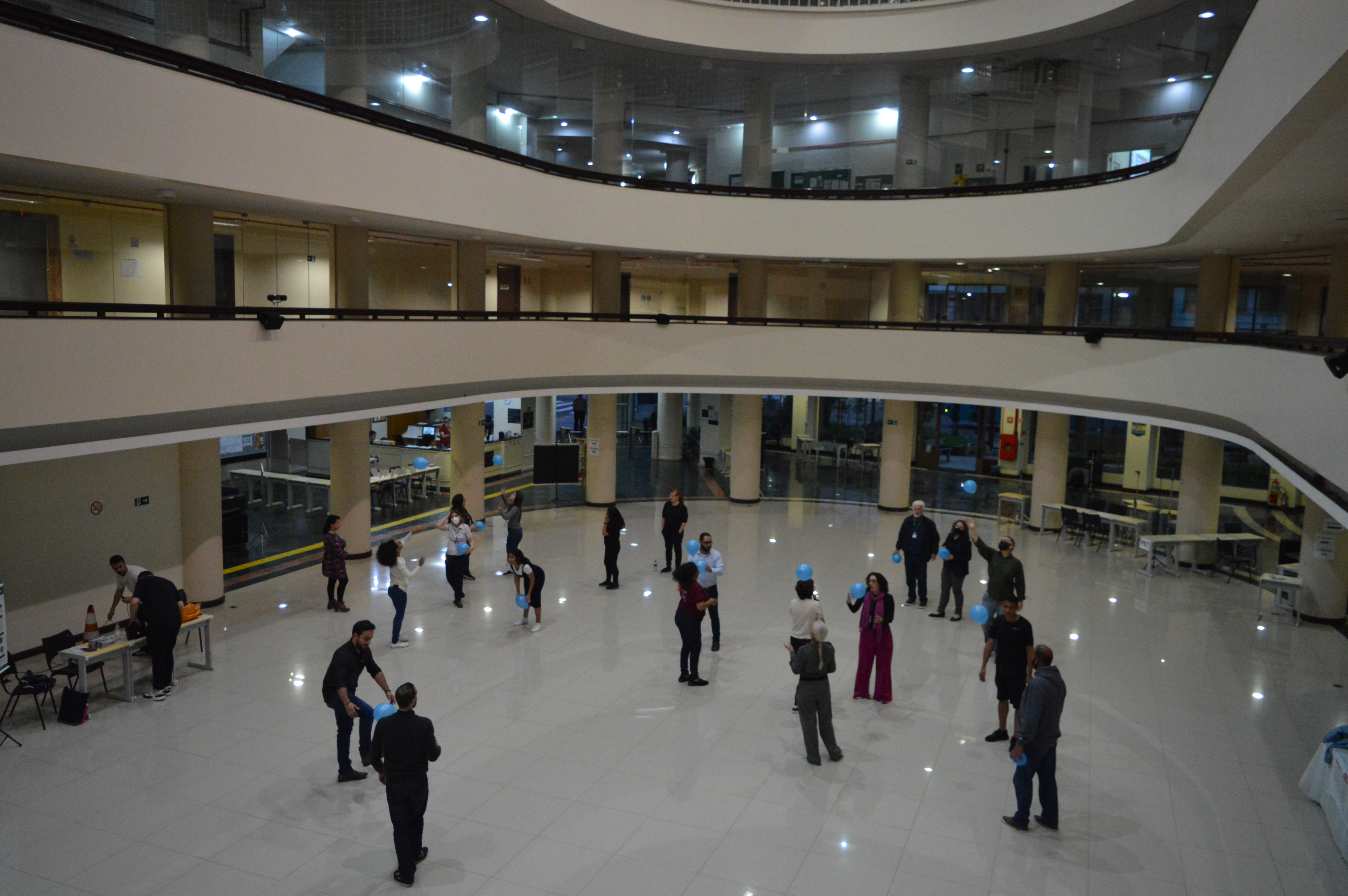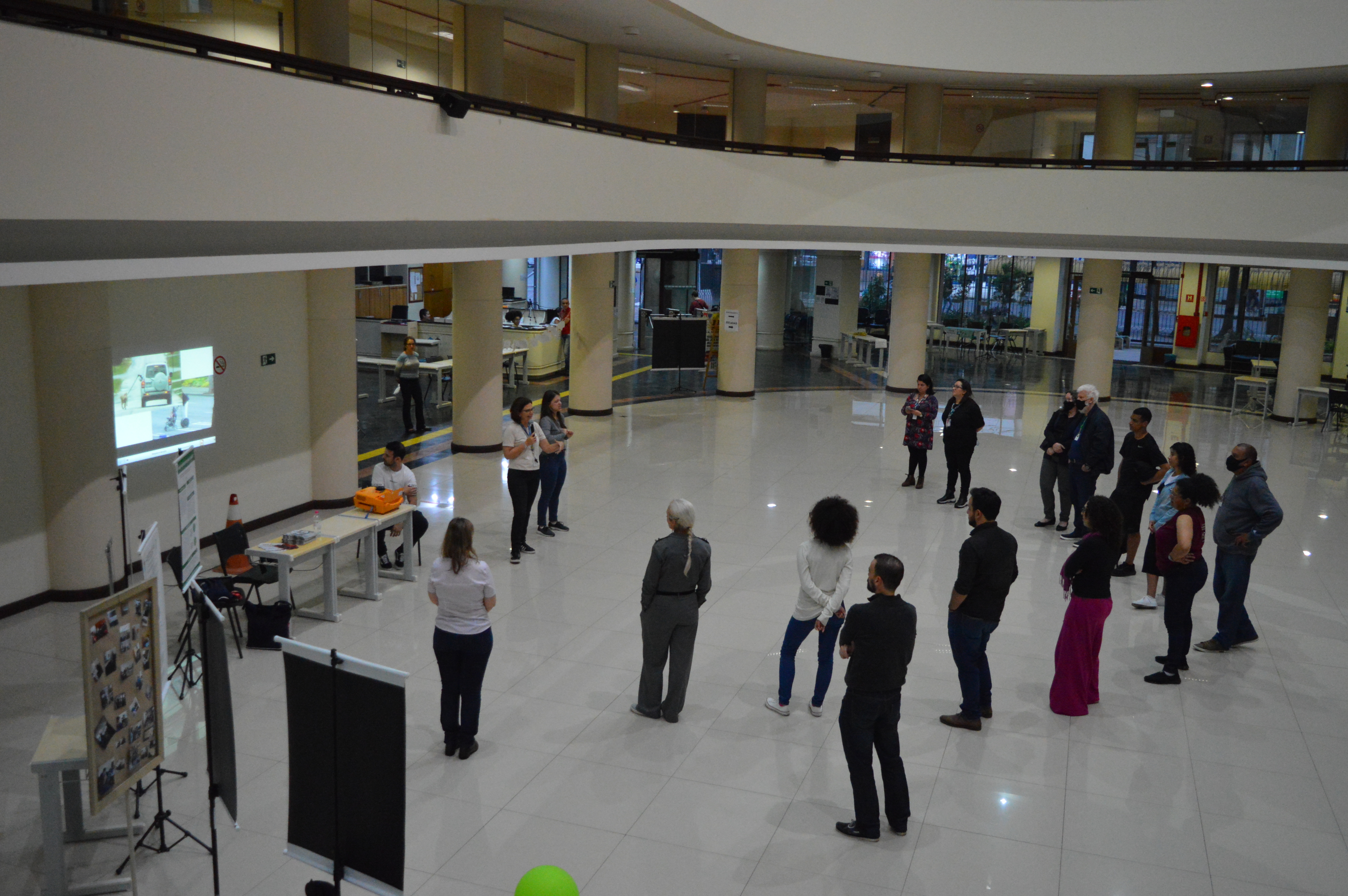 Após a última sessão de trabalhos e antes da palestra de encerramento e cerimônia de premiação, houve um momento de atividade física, no átrio - o Campus em movimento: apresentação e atividades do projeto "Mais movimento, mais saúde", coordenado pela professora de educação física d campus, Cíntia Stocchero.