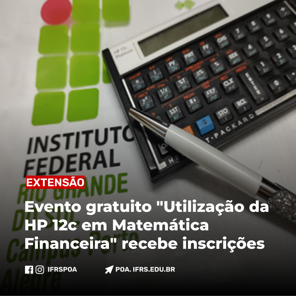 Será realizado nos dias 27 de junho e 04 de julho de 2023, o evento de extensão gratuito "Utilizando a calculadora HP12c em Matemática Financeira". Serão dois encontros de 04 horas cada um, no horário das 14h às 18h.