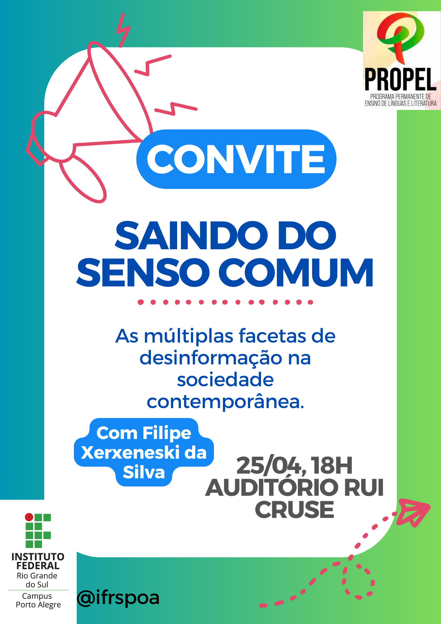 Promovido pelo PROPEL, o evento tem por objetivo propor uma apresentação sobre o tema e um diálogo com o público a fim de desenvolver o pensamento crítico e se destina a discentes do ensino médio, técnico e superior, docentes e público em geral.