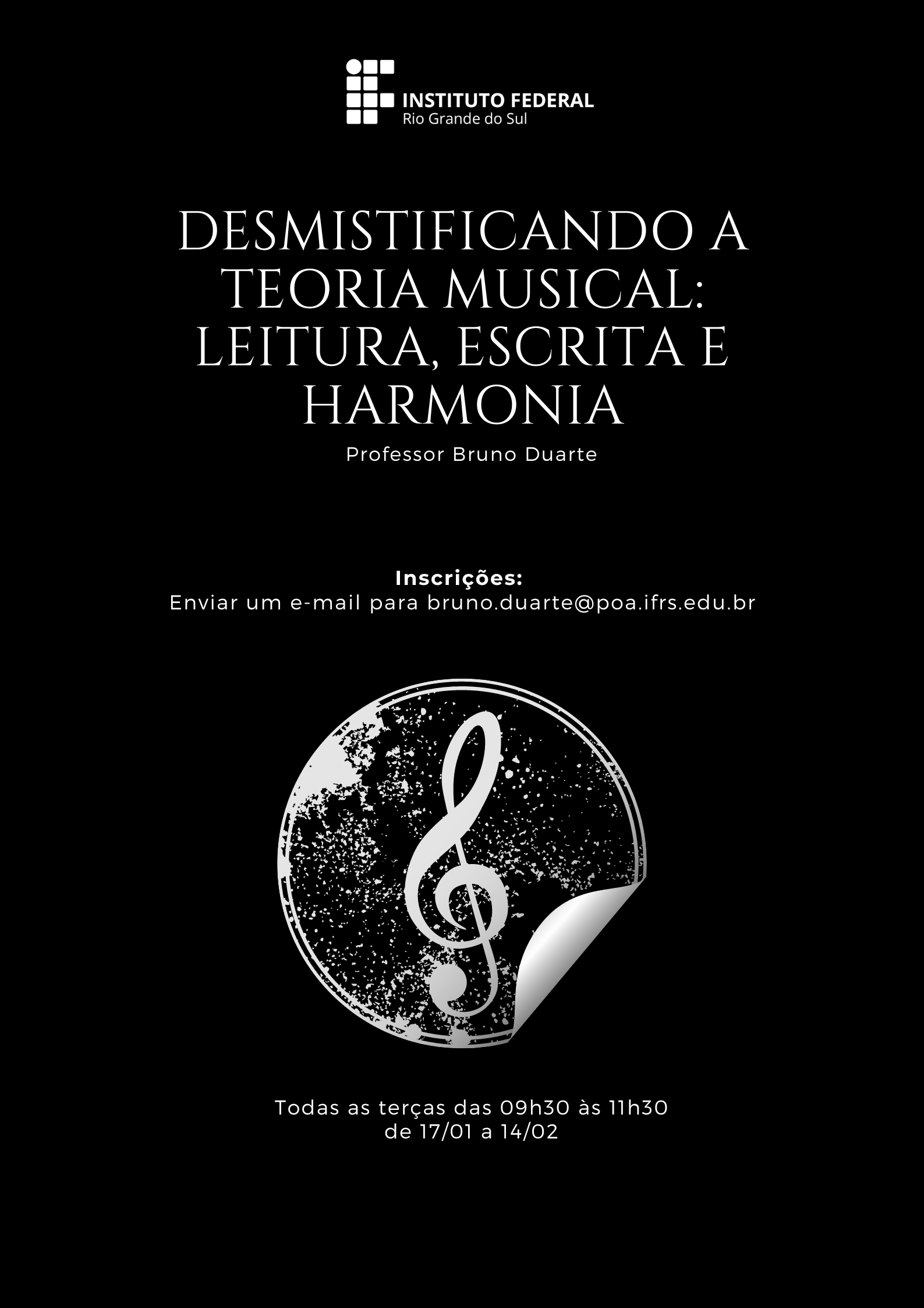 A oficina visa desenvolver conhecimentos sobre a Teoria Musical - Leitura, Escrita e Harmonia. Os principais tópicos a serem trabalhados serão: Leitura de Notas na Pauta, Composição de Acordes, Campo Harmônico, entre outros. A oficina contará com atividades de escrita e percepção musical, tendo como objetivo capacitar os alunos a compreenderam textos musicais simples, bem como a construção de acordes e suas relações.