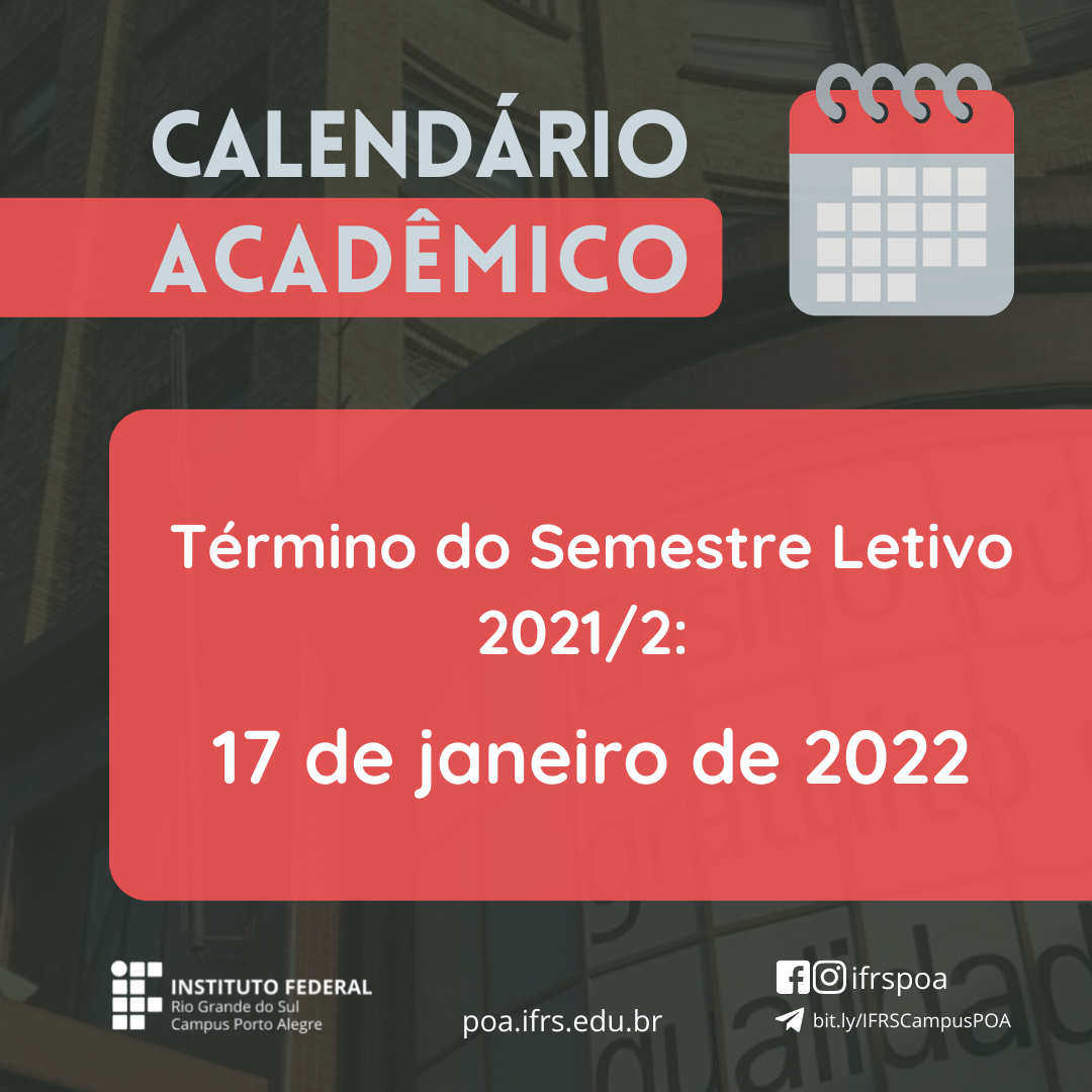 Término do Semestre Letivo 2021/1: 17/01/2022
