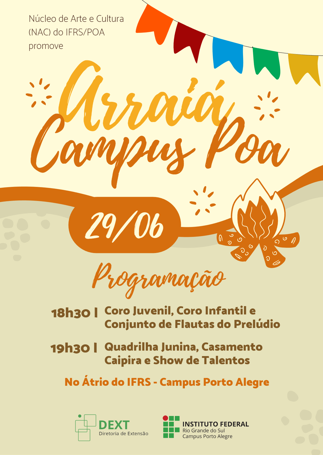 Vem aí o "Arraiá do Campus POA"! É nesta quinta-feira, dia 29/06, no átrio do campus! Participe!