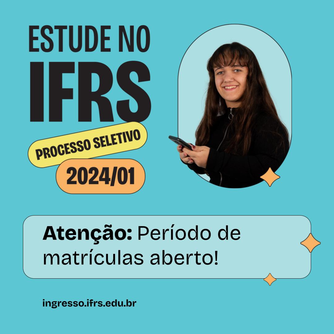 Desde ontem, segunda-feira, dia 08 de janeiro de 2024, o Instituto Federal de Educação, Ciência e Tecnologia do Rio Grande do Sul (IFRS) Campus Porto Alegre recebe inscrições para o...