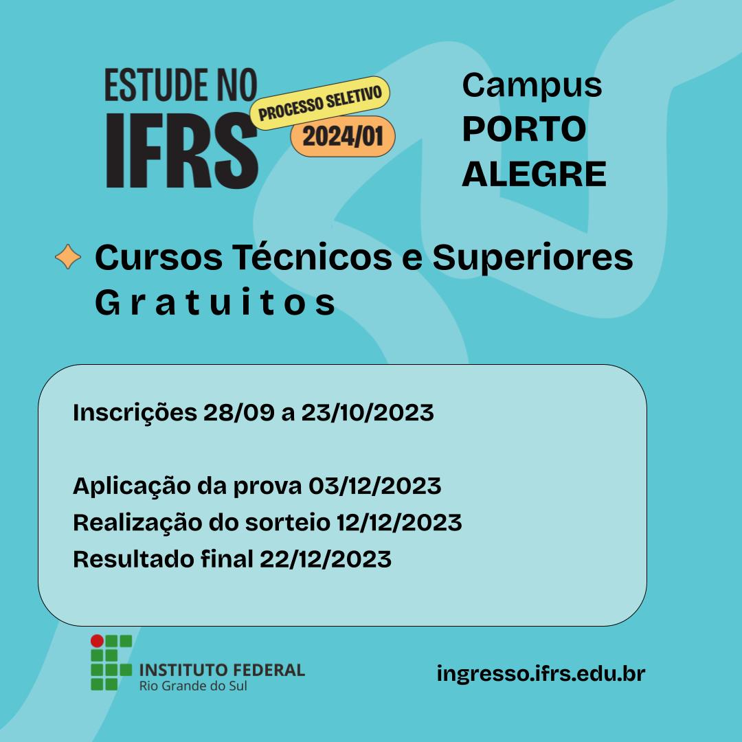 Estude no IFRS 📝 Processo Seletivo de estudantes 2024/01 O Processo Seletivo de estudantes 2024/01 é uma seleção para os interessados em começar a estudar no IFRS Campus Porto...