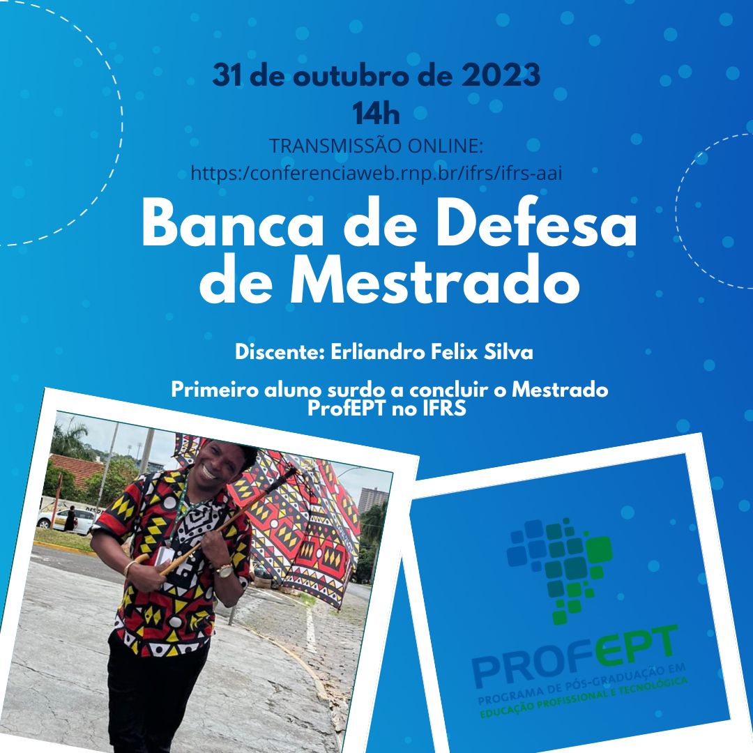 No dia 31 de outubro às 14h haverá a defesa de dissertação de mestrado e produto educacional do nosso primeiro aluno surdo - Erliando Felix Silva, orientado pela Profª Drª Andréa...