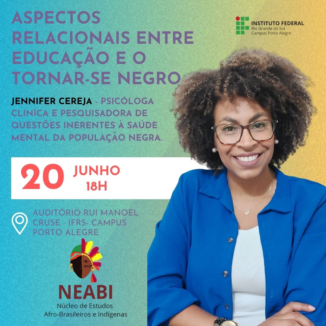 No próximo dia 20 de junho, terça-feira, às 18h, o Núcleo de Estudos Afro-brasileiros e Indígenas (NEABI) do IFRS - Campus Porto Alegre promove a palestra "Aspectos relacionais entre...