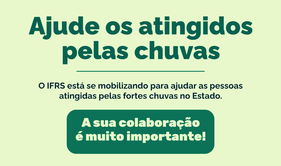 Campus Porto Alegre é um dos pontos de recebimento de doações, juntamente com outros seis campi do IFRS e a Reitoria. Toda a comunidade está convidada a contribuir!