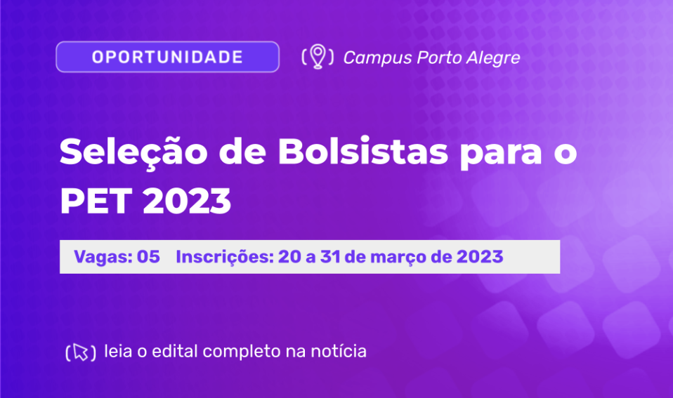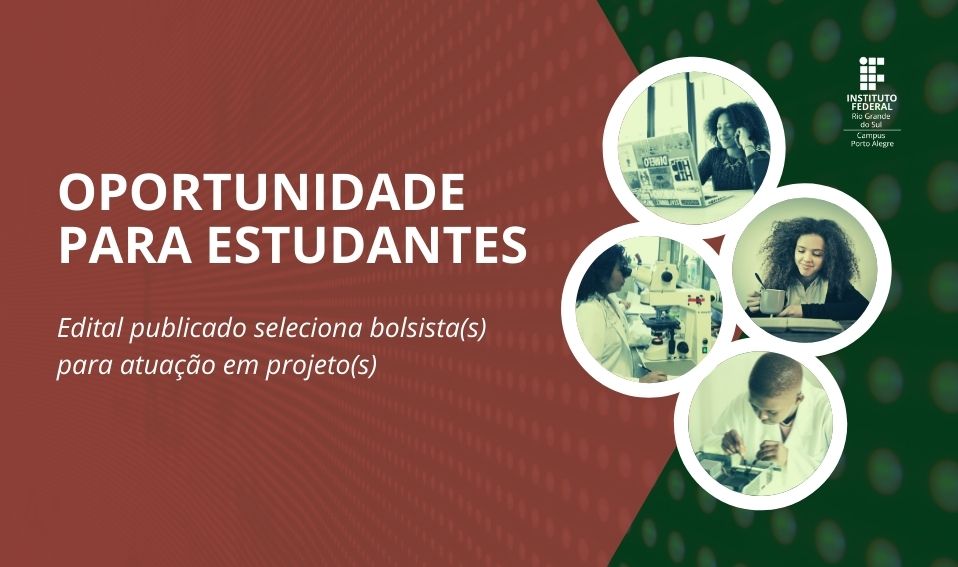Atenção, estudantes do Campus Porto Alegre! Encontra-se aberto o novo edital para seleção de bolsistas, com o objetivo de atuarem no projeto Desenvolvimento de Cursos On-line Abertos e...