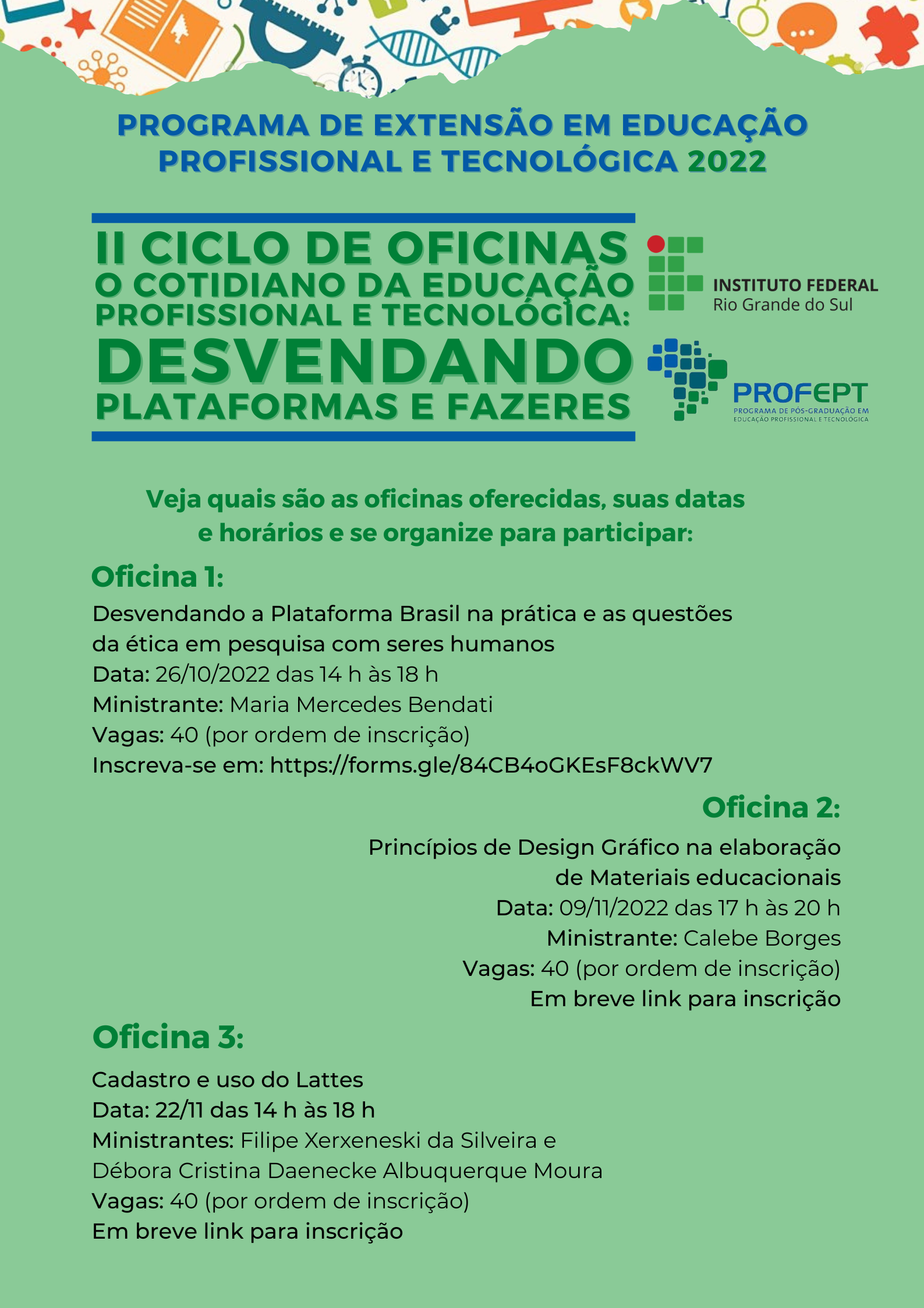 Será realizado nos dias 05 e 06 de outubro de 2022, o III Seminário ProfEPT IFRS - Pobreza, desigualdades sociais, educação profissional e tecnológica: estratégias de enfrentamento,...