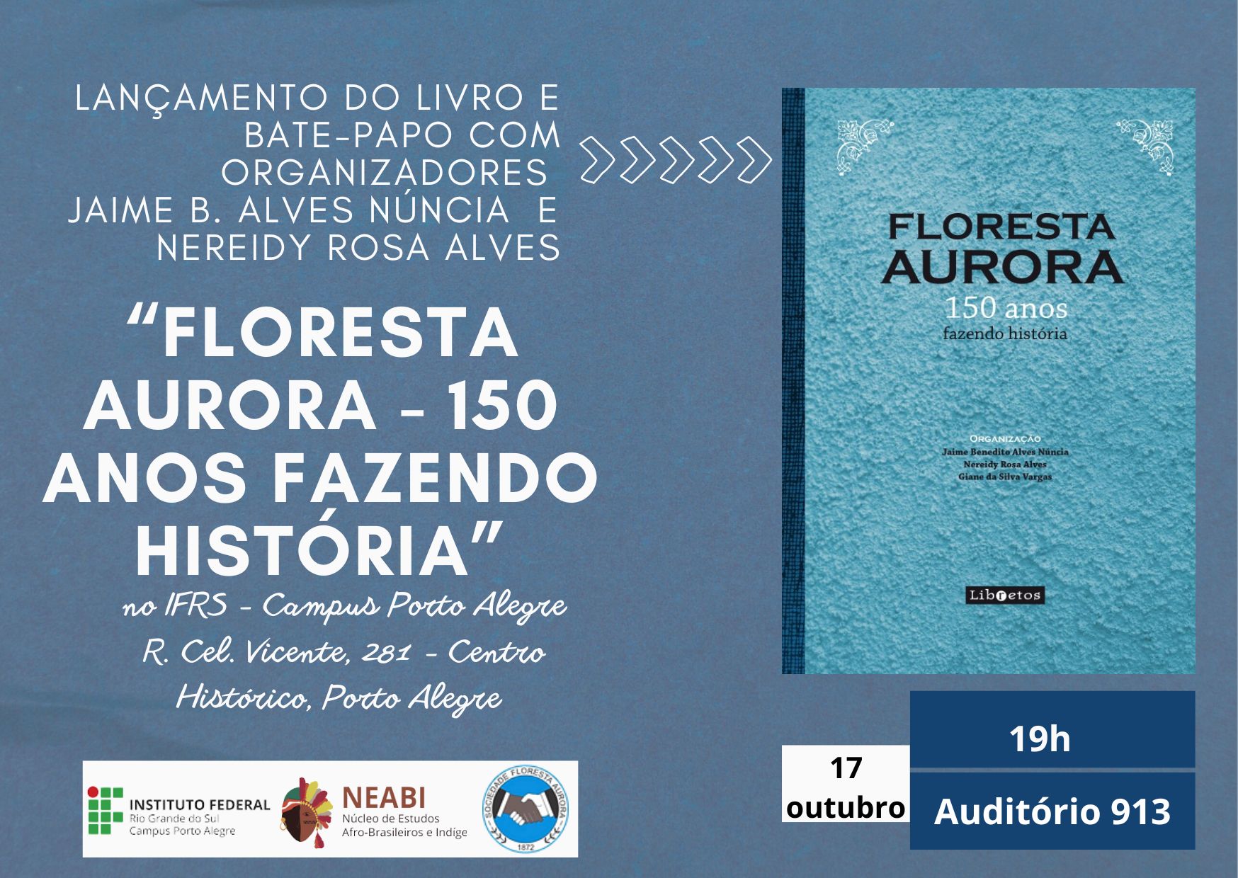 Nesta segunda-feira, dia 17 de outubro de 2022, às 19h, ocorre o evento “Floresta Aurora - 150 anos fazendo história", com lançamento do livro e bate-papo com os organizadores Jaime...