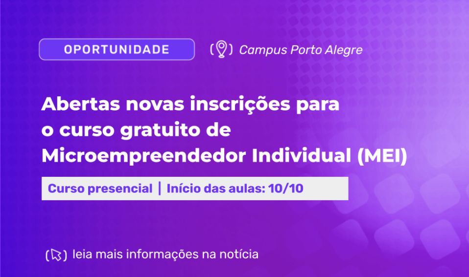 O Instituto Federal do Rio Grande do Sul (IFRS) está com inscrições abertas para o terceiro ciclo do curso gratuito de Formação Inicial e Continuada (FIC) Microempreendedor Individual...