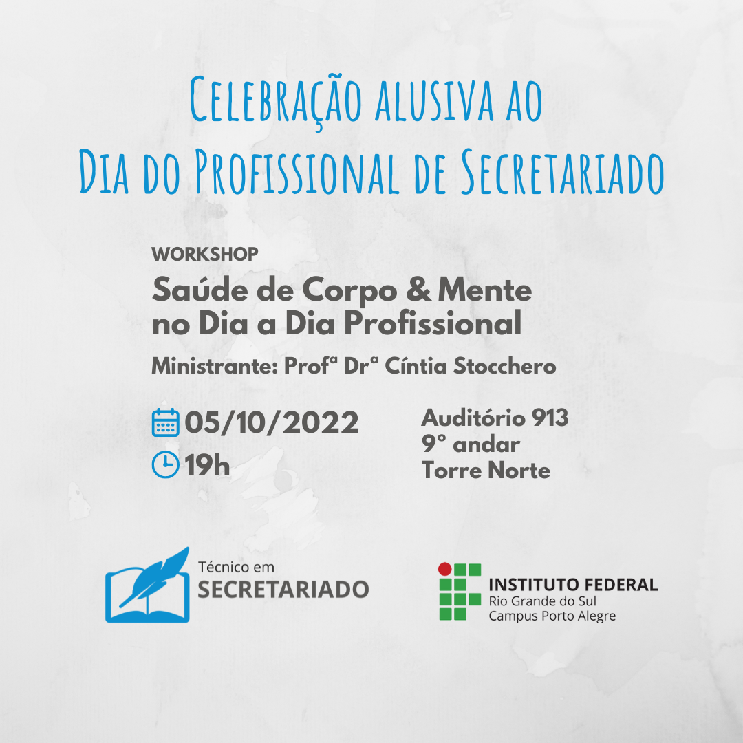 No dia 30 de setembro comemora-se o Dia do Profissional de Secretariado. Para homenagear a passagem da data, o curso Técnico em Secretariado do IFRS - Campus Porto Alegre convida para o...