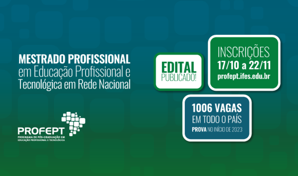 O Programa de Pós-graduação em Educação Profissional e Tecnológica (ProfEPT) lançou nesta segunda-feira, 10 de outubro, o edital para seleção do seu mestrado profissional, que...