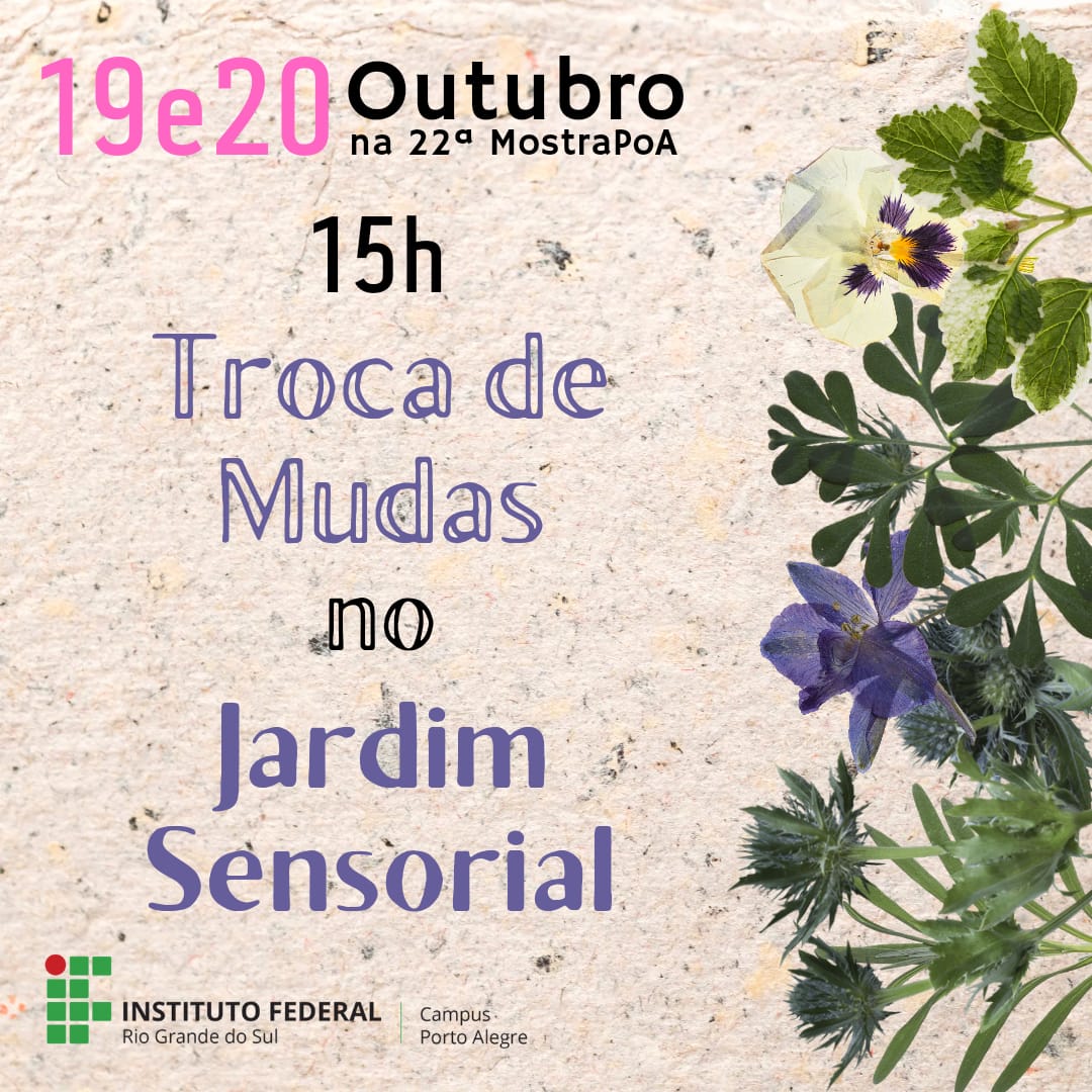 O projeto de extensão Jardim Sensorial: (re)-conectando os sentidos realizará uma ação de troca de mudas de plantas nos dias 19 e 20 de outubro, às 15h, integrando a programação da...