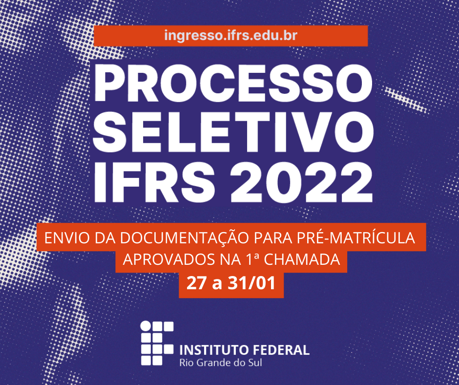 O Instituto Federal do Rio Grande do Sul (IFRS) prorrogou o período para que os candidatos aprovados em 1ª Chamada no Processo Seletivo de estudantes 2022/1 preencham os formulários...