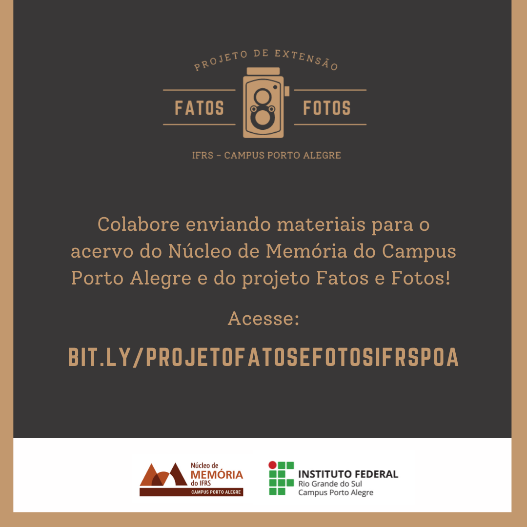 Você sabia que pode contribuir com o acervo do Núcleo de Memória (NuMem) do IFRS - Campus Porto Alegre? Por meio do projeto de extensão "Fatos e Fotos", é possível enviar...