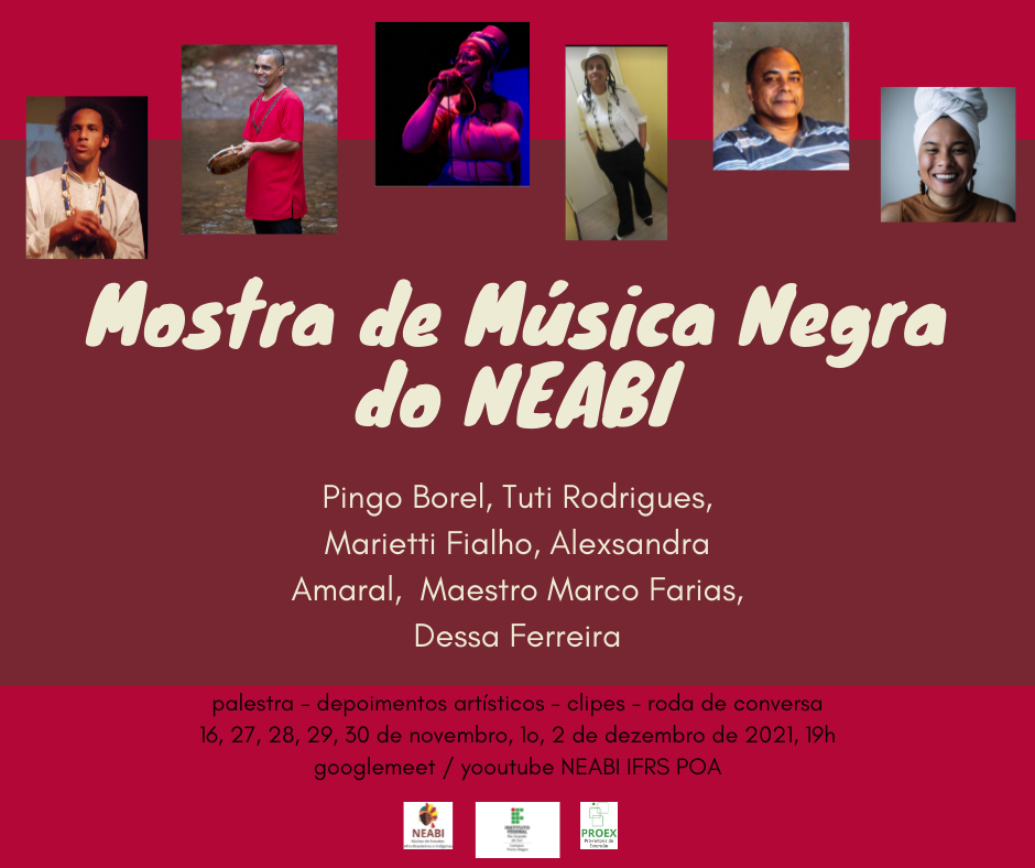 Segue até 2 de dezembro a programação da primeira Mostra de Música Negra do Núcleo de Estudos Afro-Brasileiros e Indígenas (NEABI) do IFRS - Campus Porto Alegre, que apresentará...