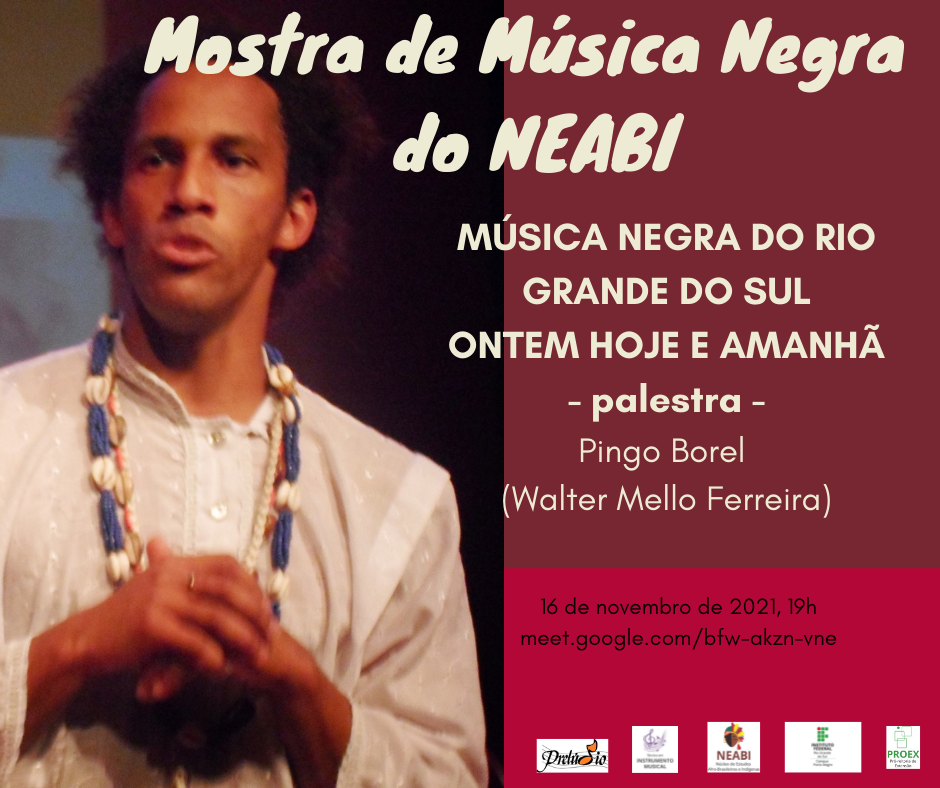 Evento, totalmente virtual, inicia às 19h, com a palestra "Música Negra do Rio Grande do Sul: ontem, hoje e amanhã", com o músico e pesquisador Walter Mello Ferreira, o Pingo Borel
