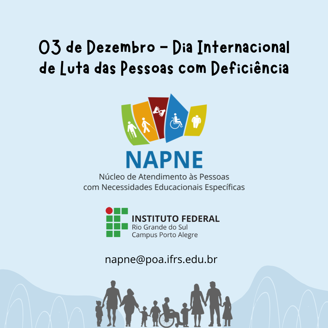Neste dia 03 de dezembro, celebra-se o Dia Internacional de Luta das Pessoas com Deficiência. A data foi instituída em 1992 pela Organização das Nações Unidas - ONU, com o objetivo...