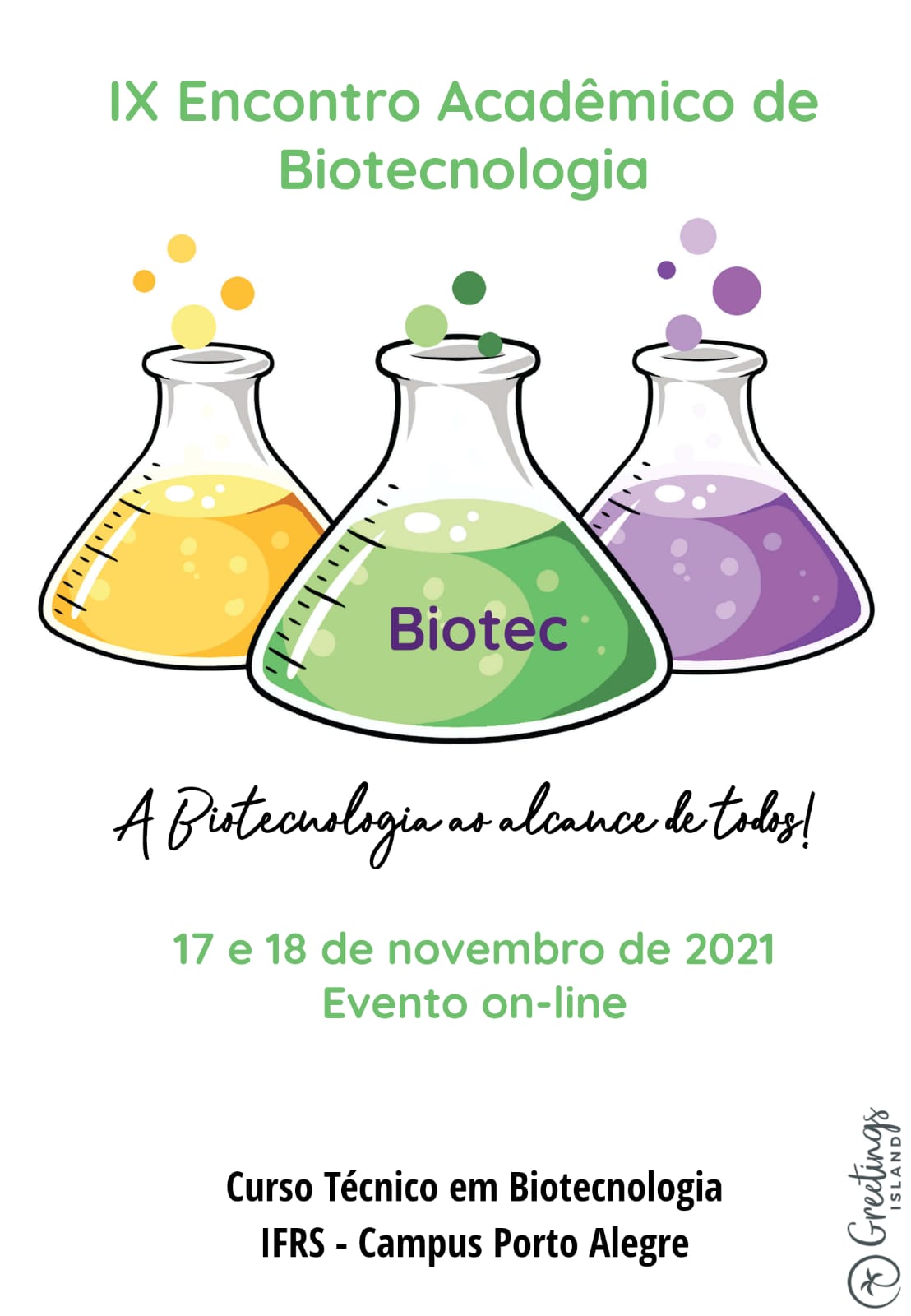 Evento de extensão organizado anualmente pelo curso Técnico em Biotecnologia do IFRS - Campus Porto Alegre, acontece nos dias 17 e 18 de novembro de 2021 o IX Encontro Acadêmico de...