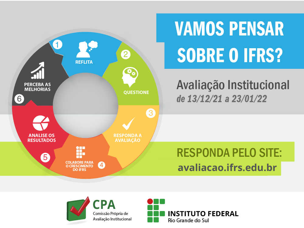 Uma oportunidade de contribuir para melhorias no Instituto Federal do Rio Grande do Sul (IFRS): de 13 de dezembro de 2021 a 23 de janeiro de 2022 estará aberto o período para a...