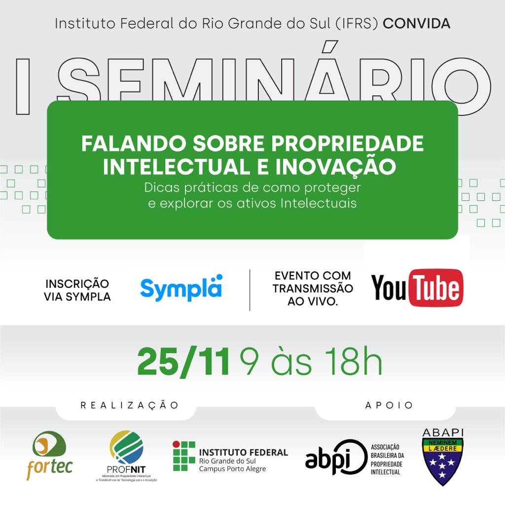 Será realizado no dia 25 de novembro, das 9h às 18h, o I Seminário "Falando sobre Propriedade Intelectual e Inovação: dicas práticas de como proteger e explorar os ativos...