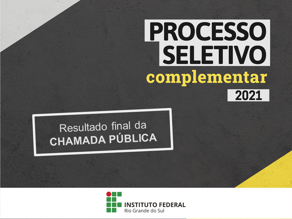 Foi publicado nesta segunda-feira, 18 de outubro, o resultado final da Chamada Pública do Processo Seletivo Complementar de Estudantes 2021 do IFRS. Os candidatos inscritos no Campus Porto...