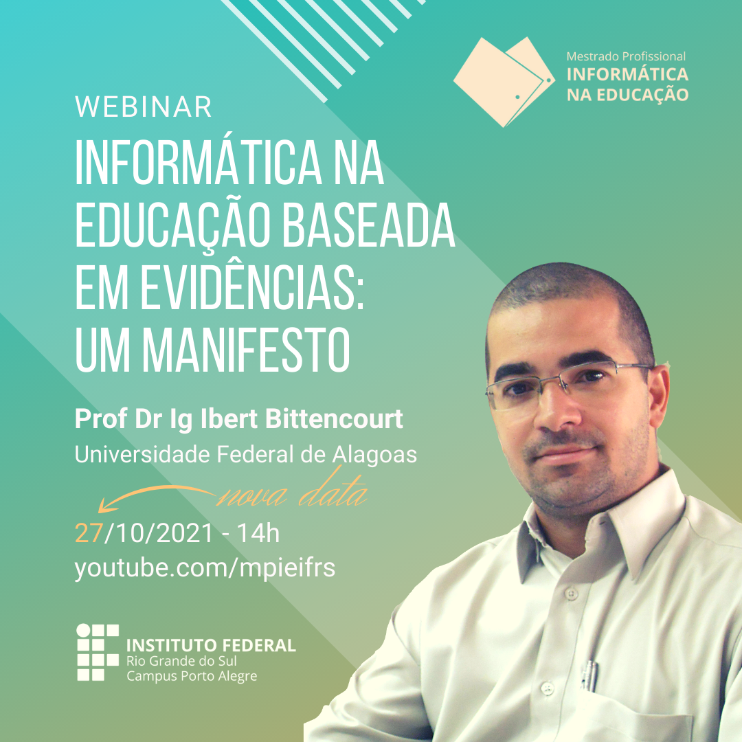 Acontece na quarta-feira, dia 27 de outubro, às 14h, o webinar "Informática na Educação baseada em evidências: um manifesto", do III Ciclo de Debates MPIE, evento de extensão...