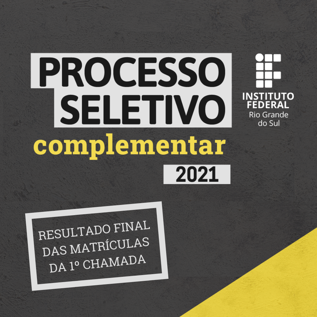 Foi publicado nesta segunda-feira, 13 de setembro, o resultado final das matrículas em primeira chamada do Processo Seletivo Complementar de Estudantes 2021 do IFRS. Os candidatos podem...