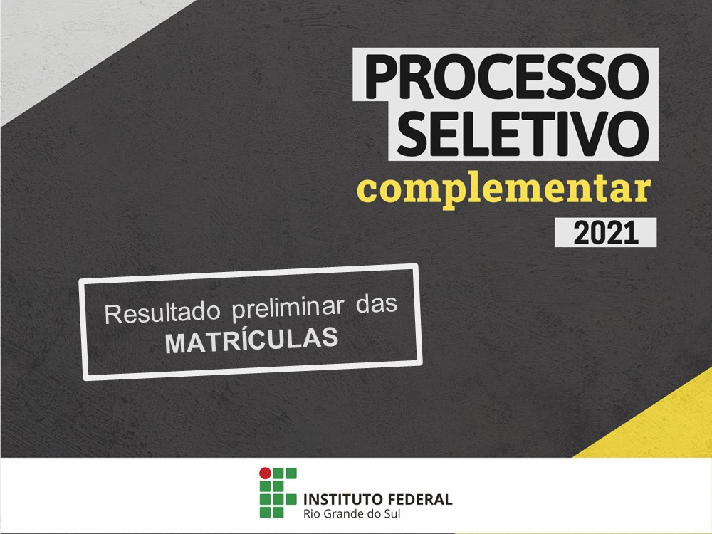 Atenção, candidatos que realizaram a pré-matrícula nessa primeira chamada do Processo Seletivo Complementar 2021 do IFRS: o resultado preliminar das matrículas foi publicado nesta...
