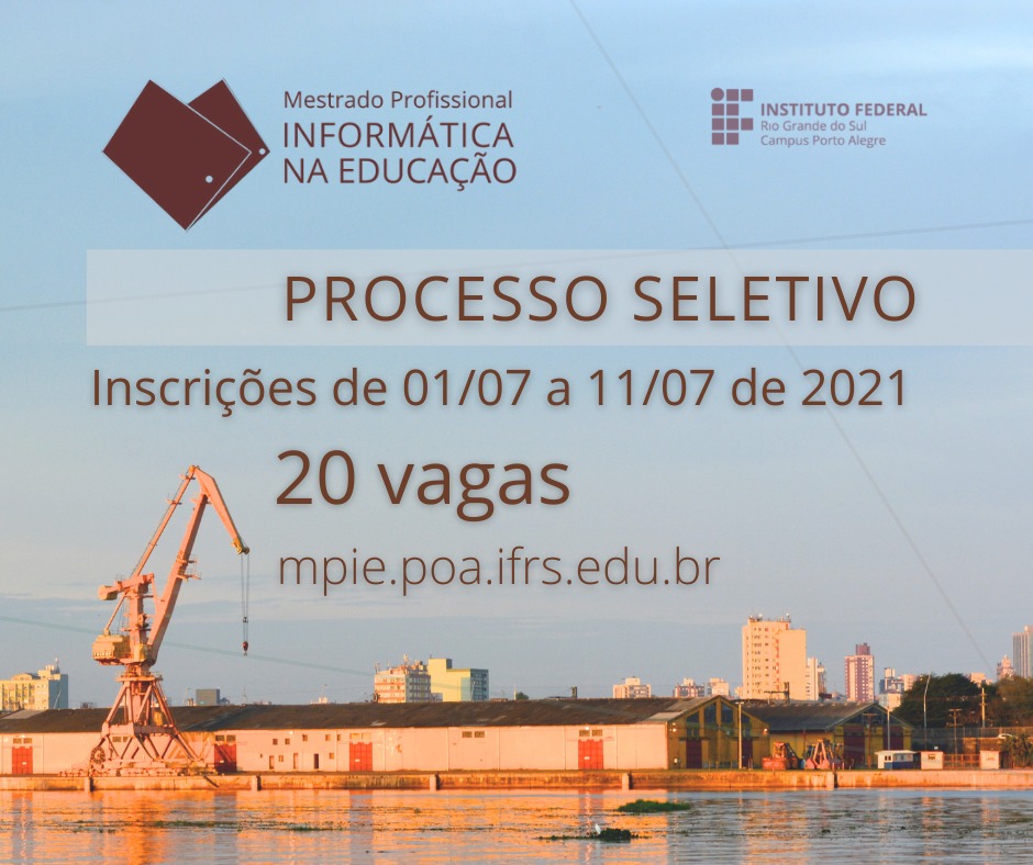 O edital de processo seletivo para ingresso no curso gratuito de Pós-graduação - Mestrado Profissional em Informática na Educação, do Campus Porto Alegre do Instituto...
