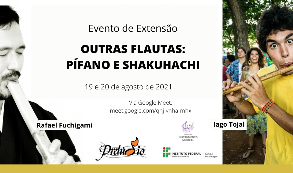 O Curso Técnico em Instrumento Musical e o programa de extensão Projeto Prelúdio promovem nos dias 19 e 20 de agosto o evento virtual "Outras flautas: pífano e shakuhachi", que será...