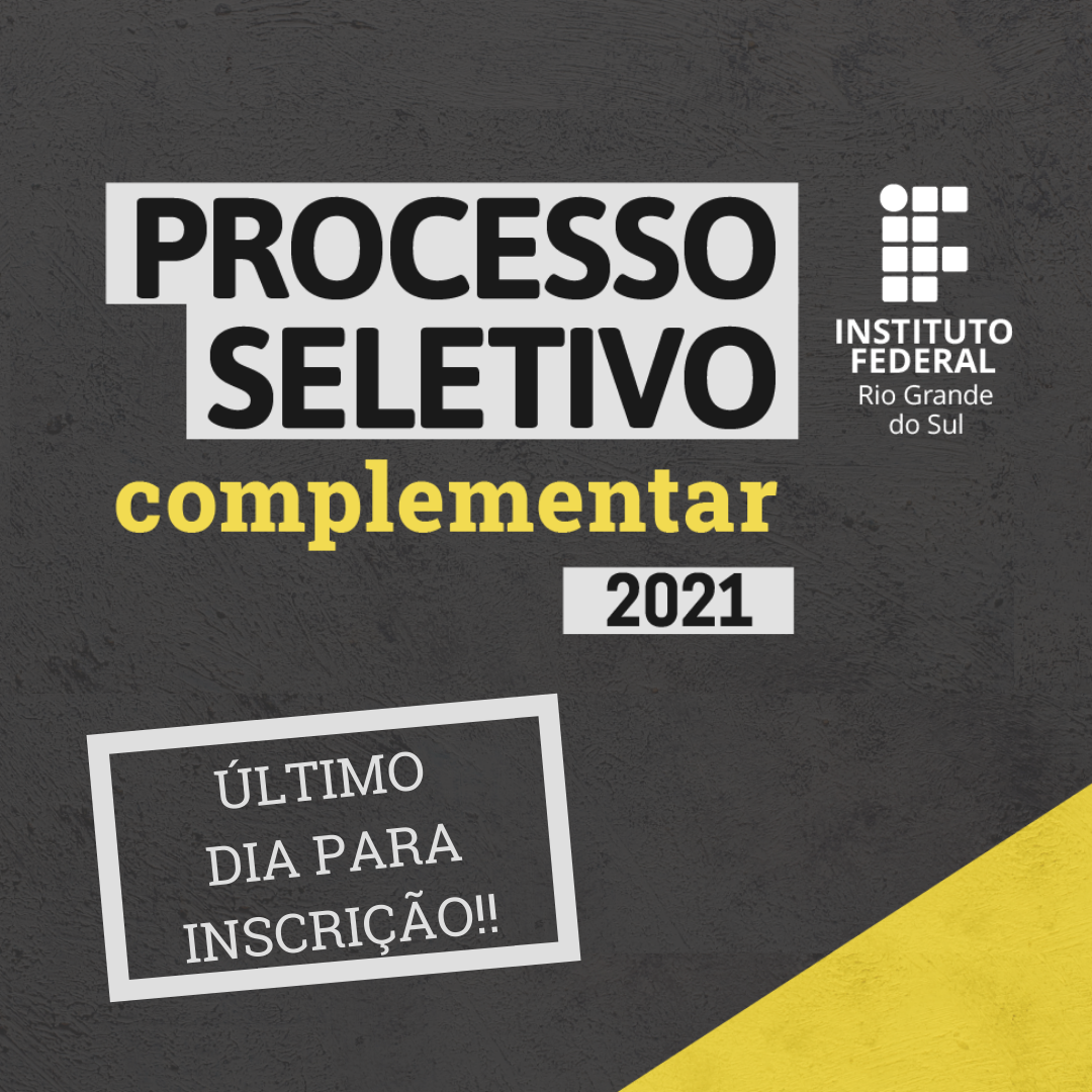 Termina nesta quarta-feira, 11 de agosto, o prazo de inscrições para o Processo Seletivo Complementar de Estudantes 2021 do Instituto Federal do Rio Grande do Sul (IFRS). São vagas para...