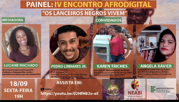 Acontece nesta sexta-feira, 18 de setembro de 2020, às 19h, o painel IV Encontro Afrodigital "Os Lanceiros Negros Vivem", mais um evento on-line promovido em parceria com o Núcleo de...