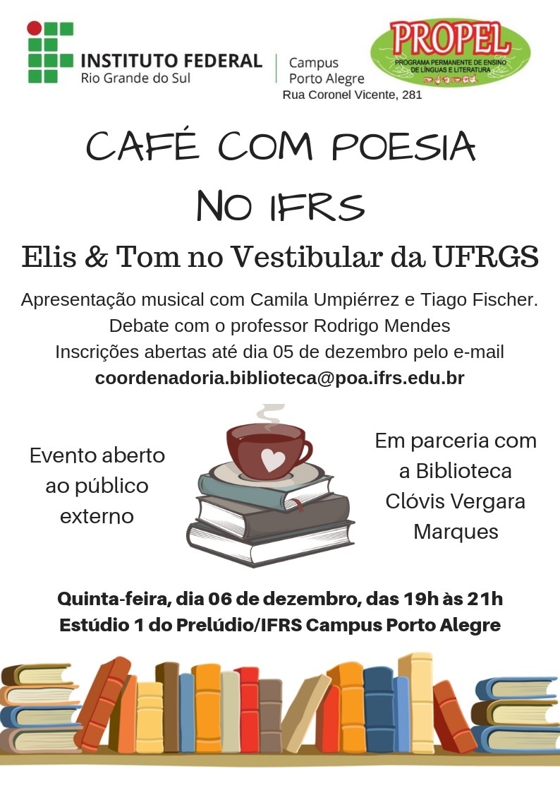 O Programa Permanente de Ensino de Línguas e Literatura (PROPEL) do IFRS - Campus Porto Alegre, em parceria com a Biblioteca Clóvis Vergara Marques (BCVM) do campus, promovem nesta...